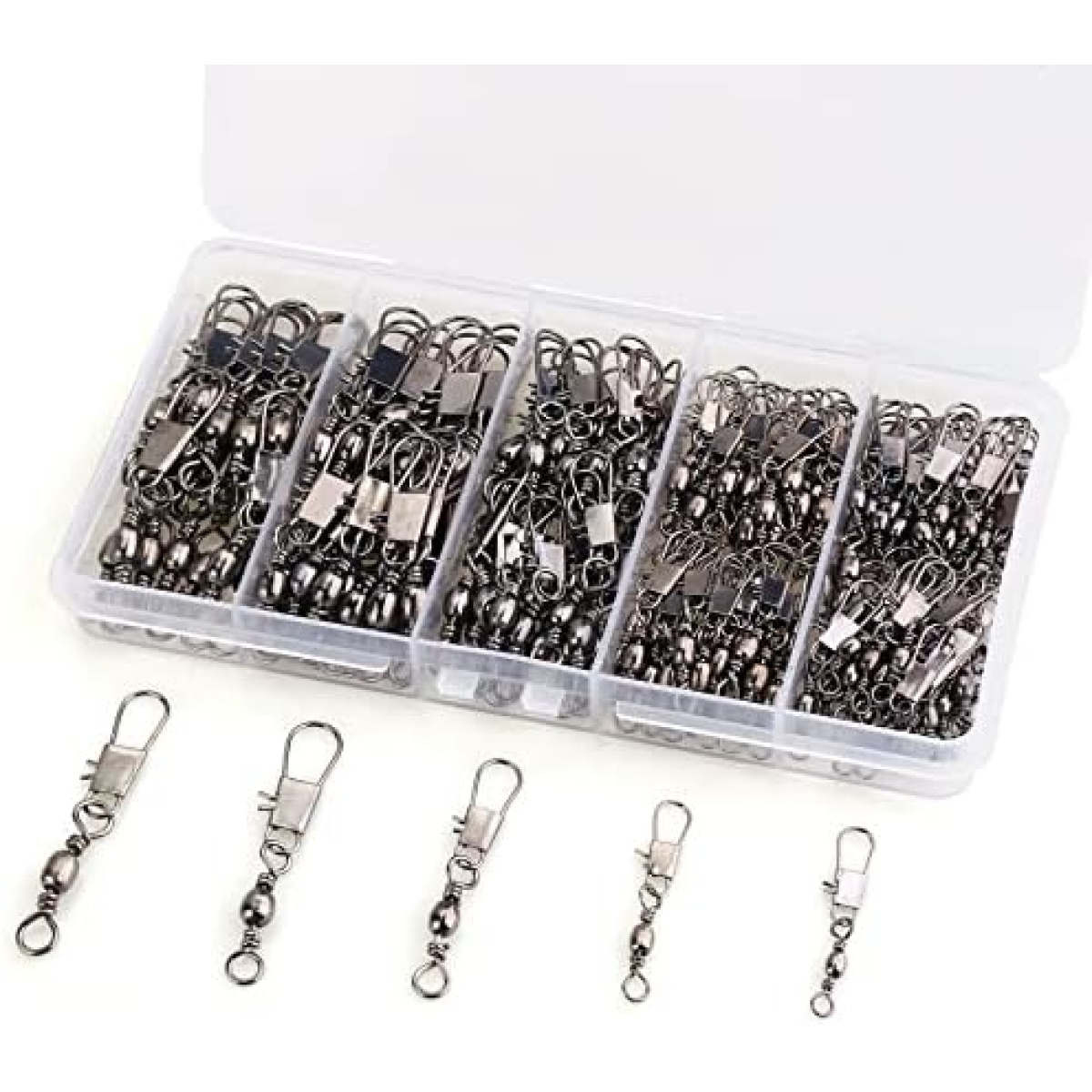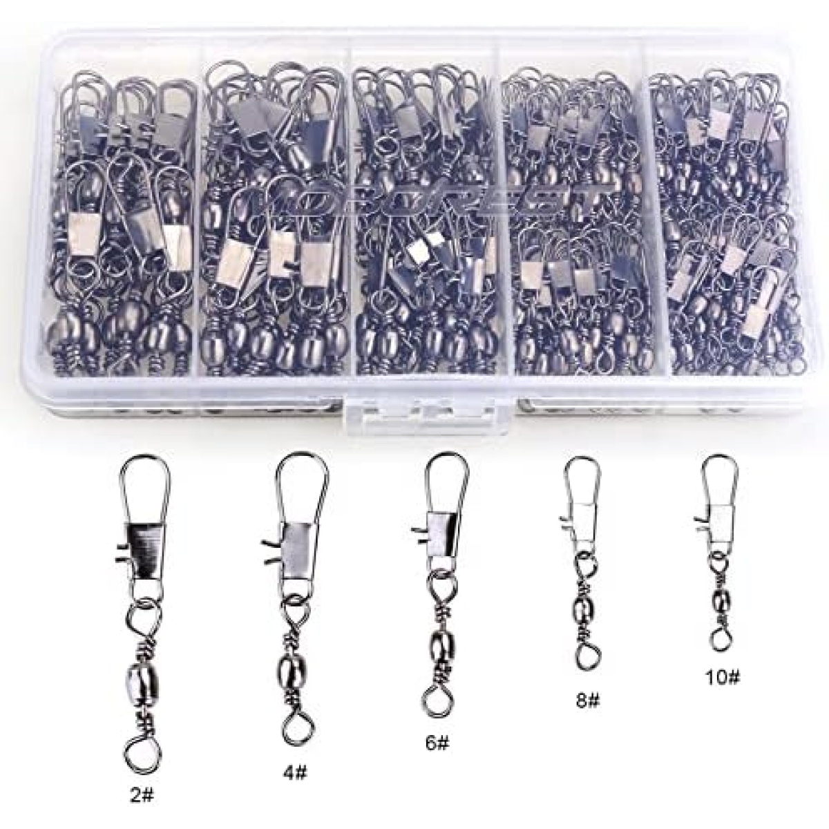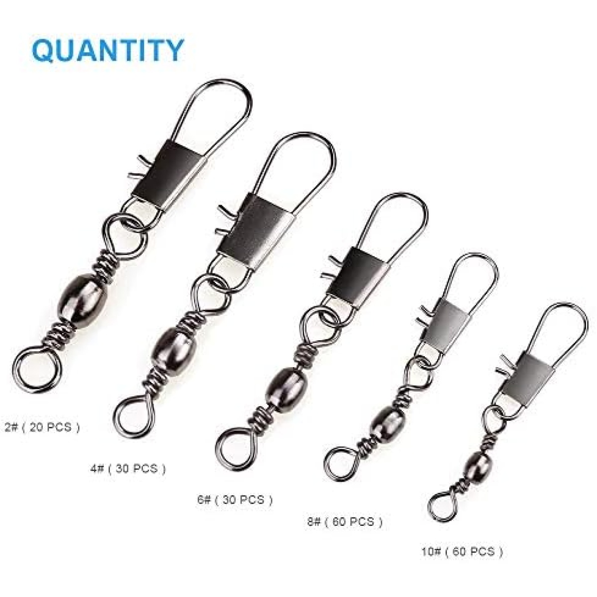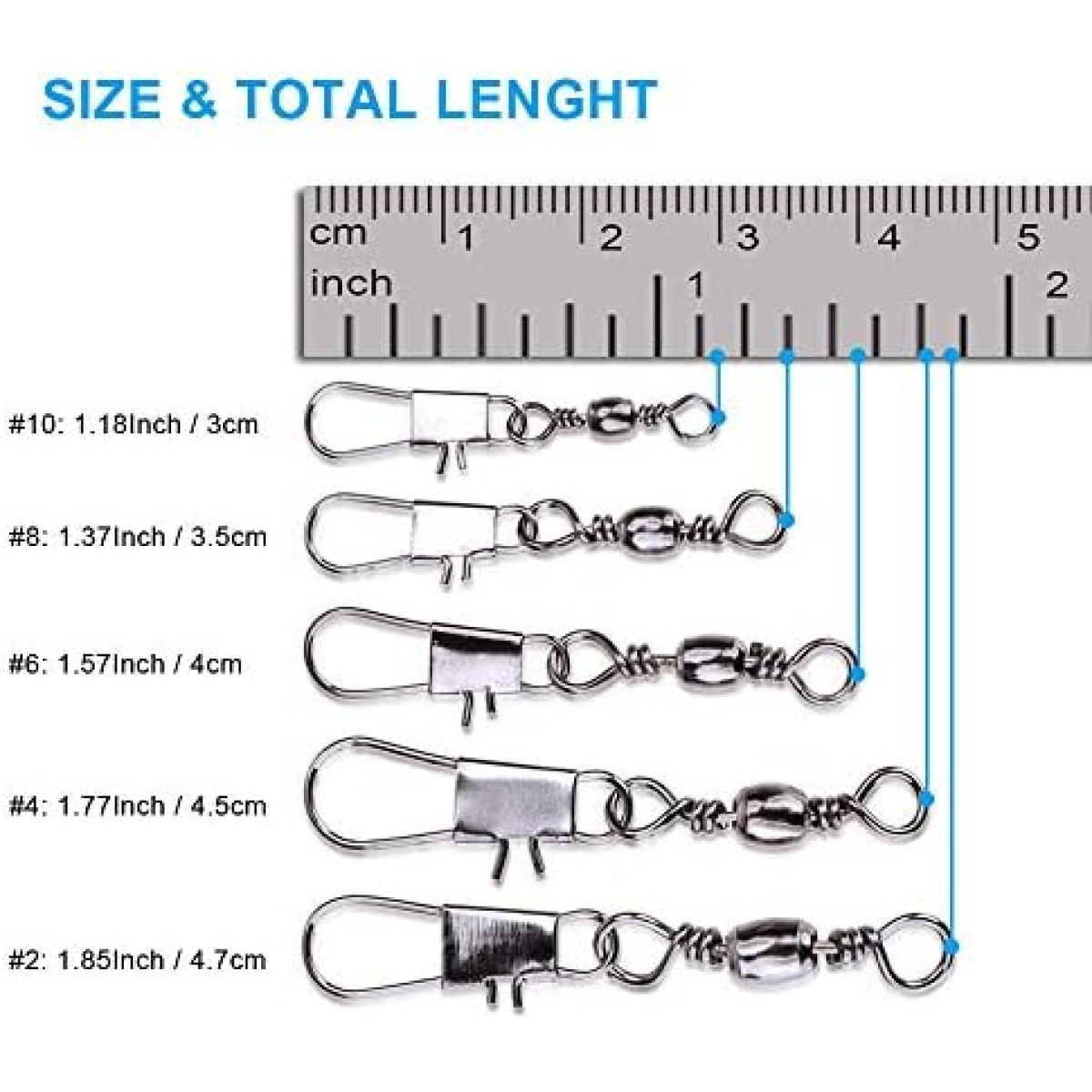 5. PACKAGE: Total 200pcs fishing swivels connectors in a reusable plastic box, included #2( 20PCS) #4(30PCS) #6(30PCS) #8( 60PCS) #10(60PCS), This is an excellent collection of barrel swivels of an excellent price.