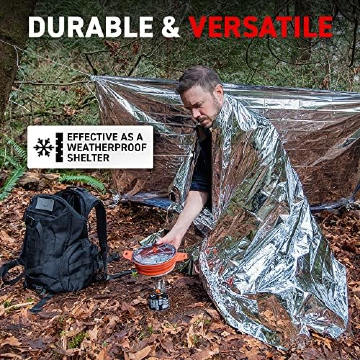 ✅【WATERPROOF & WINDPROOF】Provides warmth without being compromised by wind, rain, or dew. This multifaceted rescue foil blanket can be functional as an additional layer inside your shoes, gloves, or backpack to keep you and your belongings dry and warm.