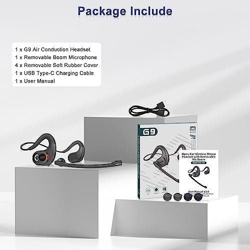 Detachable Noise Cancelling Microphone: The Open ear headphones is equipped with DSP noise reduction technology to ensure clear calls and a great music experience. The detachable boom is magnetically designed and it can rotate 360° to maximize your voice pickup to improve call quality! In addition, Bluetooth headset with microphone has Φ15.4mm driver speaker, it is the bigger than others and the sound will be more clarity and louder.