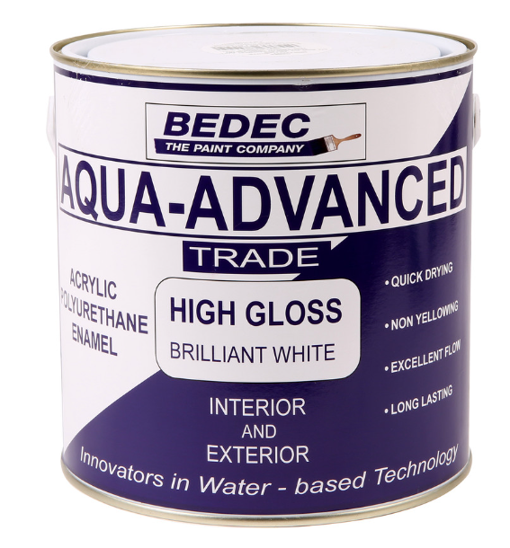 A high-quality, quick-drying brilliant white paint for interior and exterior use. Bedec Aqua Advanced High Gloss offers exceptional durability and gives a smooth enamel finish. It’s easy to apply with excellent flow, covering up to 13-15m² per litre.