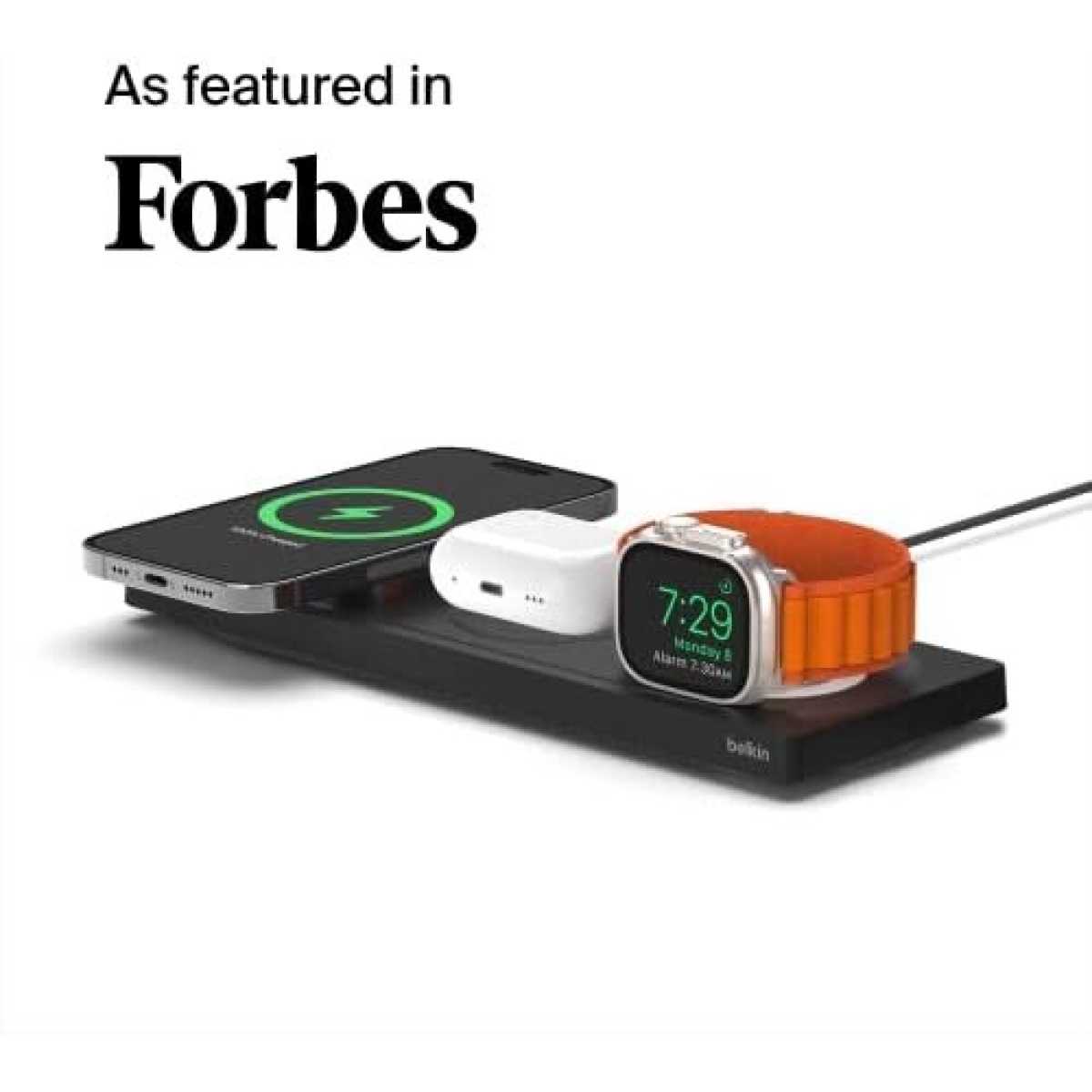 3-IN-1 CHARGER: Power your apple ecosystem with this Belkin 3-in-1 Wireless iPhone Charger Pad. It is the perfect charging station for multiple Apple devices, including iPhone 15, 14, 13 and 12, Pro & Pro Max, Apple Watch, and AirPods