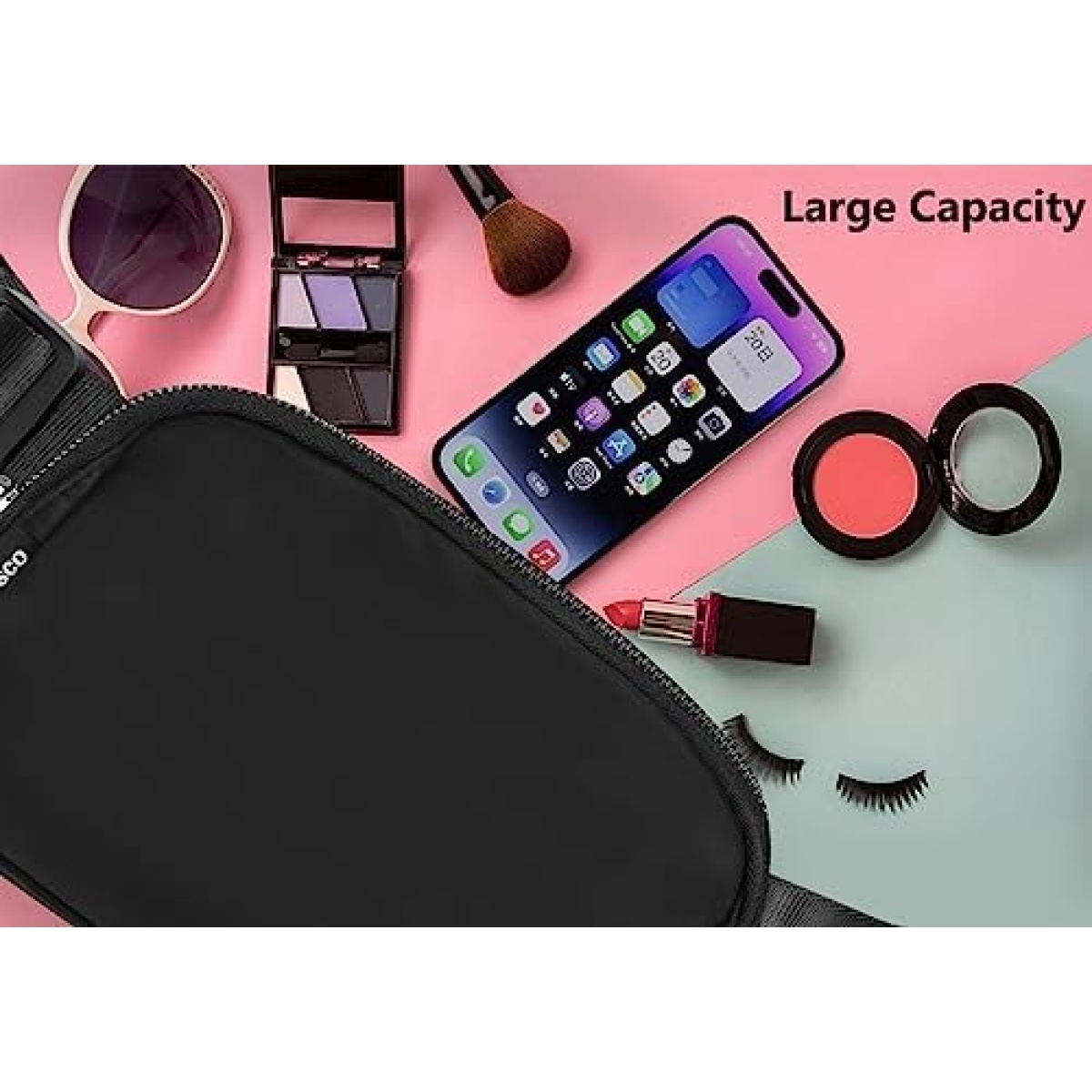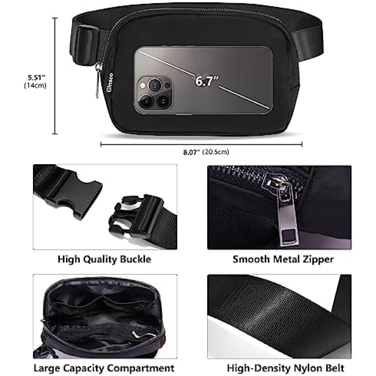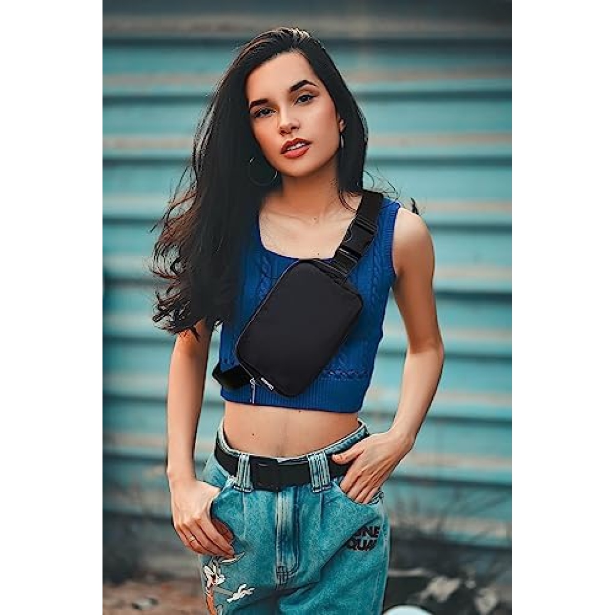 【FUNCTIONAL】- Crossbody bag for women, mini belt bag ideal for women,men and teenagers. Adjustable wide waist strap made of high- tensity webbing, more glossy than normal webbing, secured with a reliable thick ‘T’ buckle, which fit for any body type. The fanny packs can be used as a cross body bag, bum bag, chest bag ,shoulder bag or handbag. Great addition for walking, exercising,running, cycling,hiking, traveling and daily carrying.