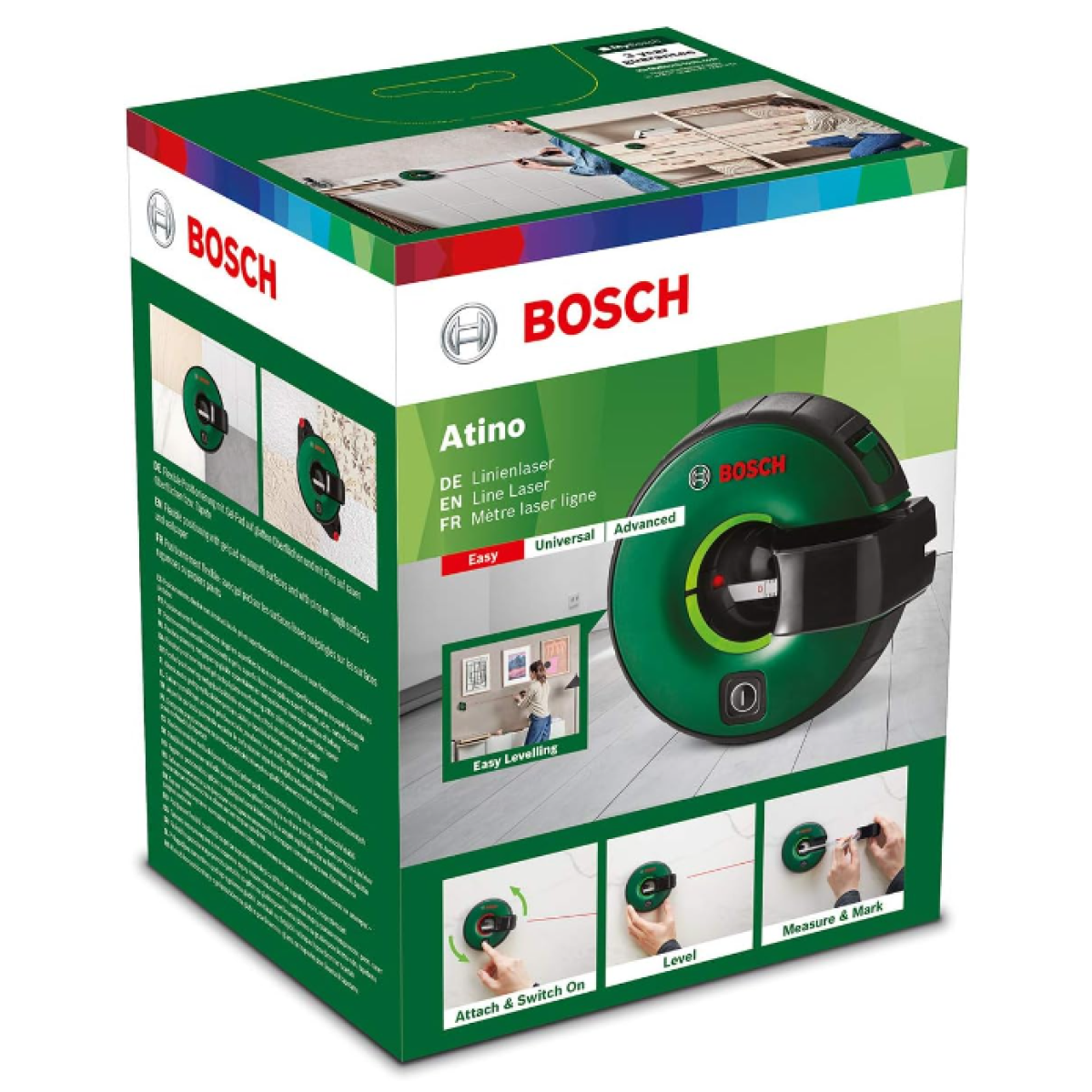 Bosch 2-in-1 line laser Atino with integrated measuring tape (horizontal or vertical alignment thanks to easy attachment on rough and smooth surfaces)