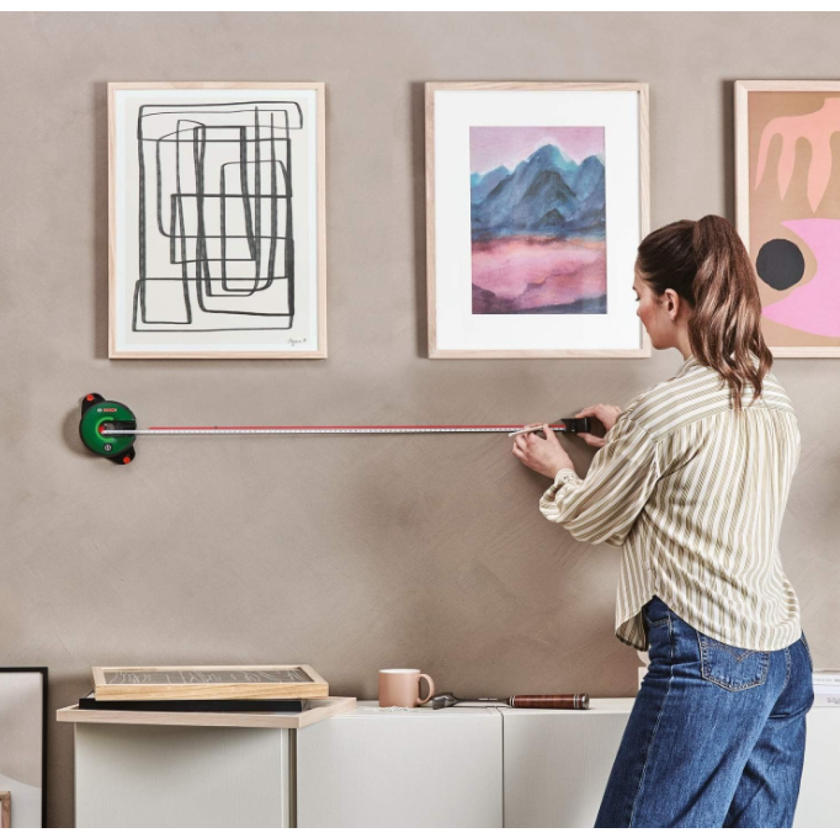Product 2: Line laser with an integrated tape measure for small levelling projects, such as aligning pictures, shelves or handles on cabinets