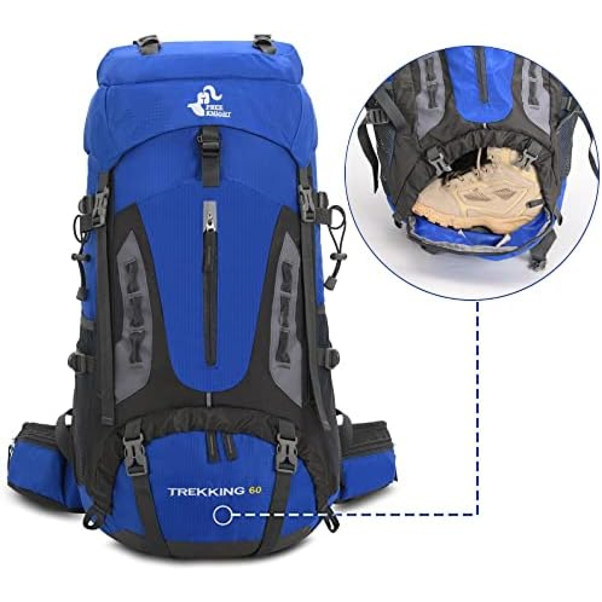 LARGE CAPACITY & MULTI COMPARTMENTS:Spacious main compartment and numerous pouches with large capacity.Special main pocket closing drawstring design, tight closure to prevent the items falling from the backpack.With one Interior Pouch for water bladder.Shoes separated storing pouch, preventing the items inside backpack to be dirty, convenient and practical.Two side pockets to carry more water bottles, And it meets size requirements for most airlines, enough room for 3 or 4 days trips.
