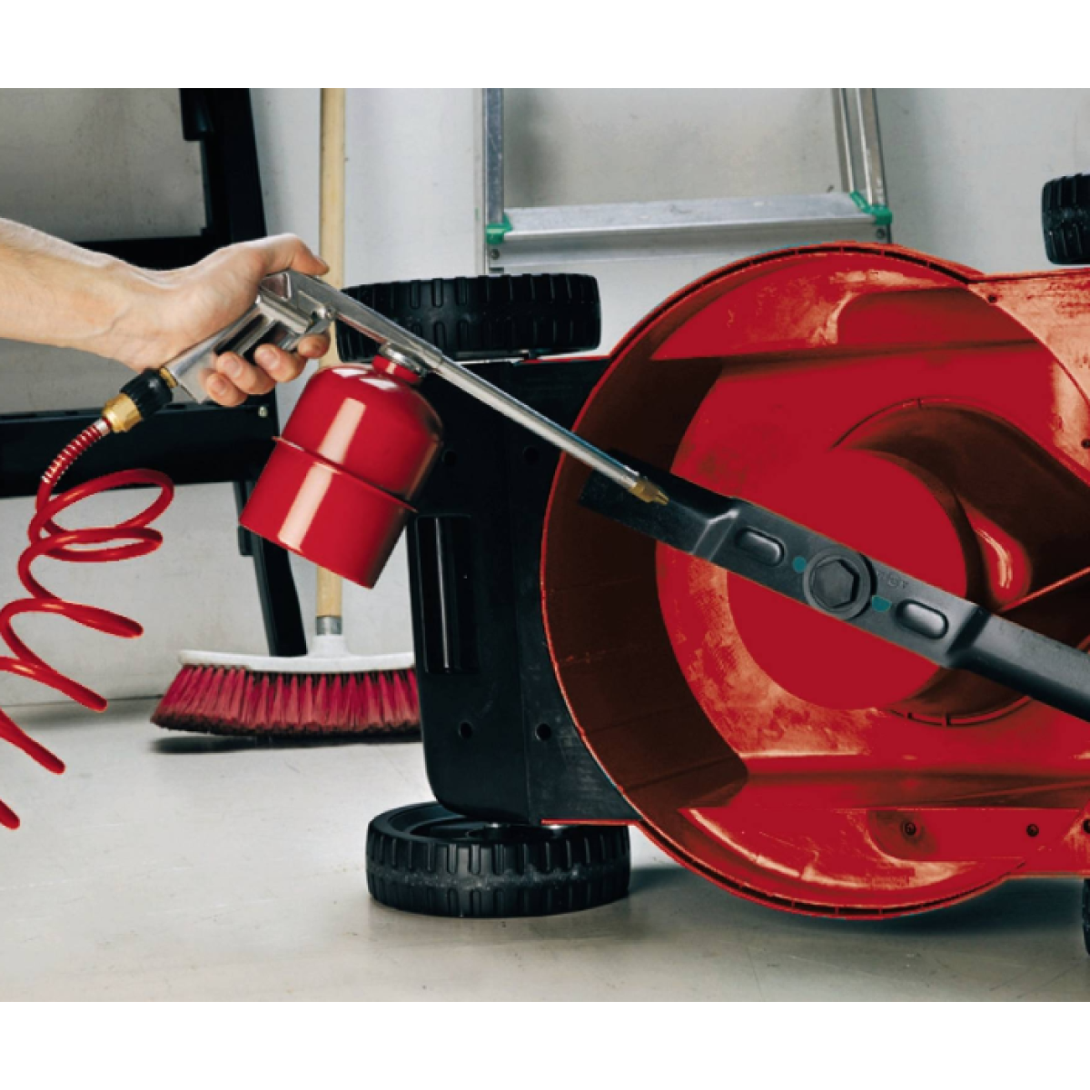 Einhell’s 5-piece professional set enables a wide range of compressed air applications and is suitable for compressors with a working pressure of at least 8 bar. The practical blow-out gun can be used to clean the working area and dust surfaces to be painted. The paint spray gun is specially designed for use with paints and varnishes. The spray gun is suitable for light oil and cleaning agents. The set contains a tire filler for checking the tire pressure and filling the tires. A 4 meter long compressed air hose with an internal diameter of 6 mm is available for flexible applications. The spiral hose also includes a quick-release coupling for quick tool changes.