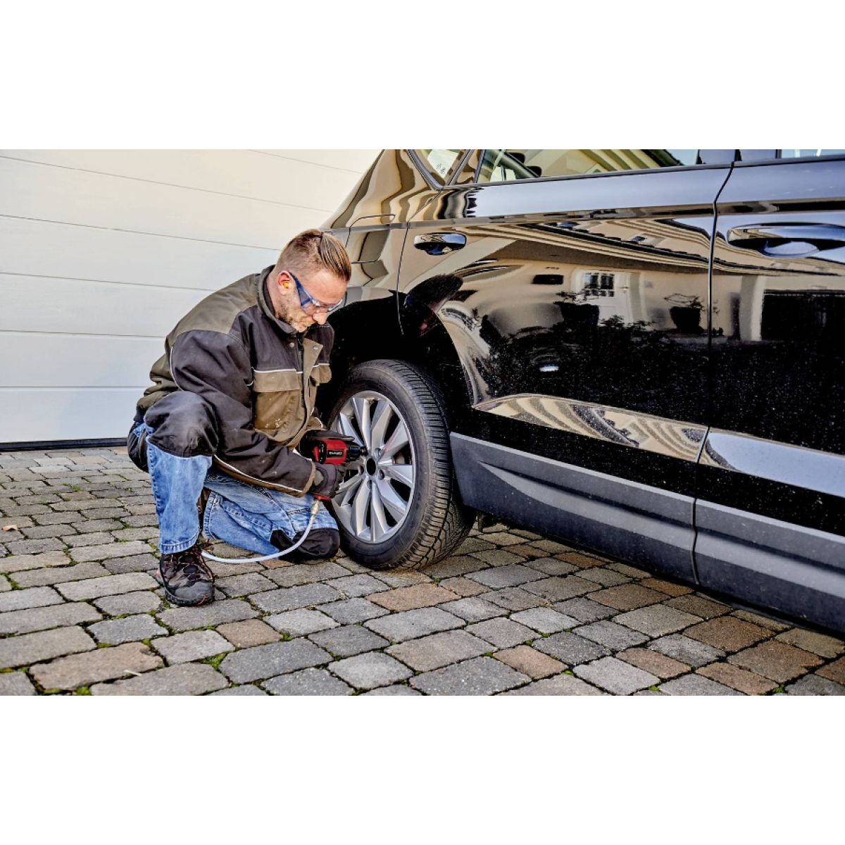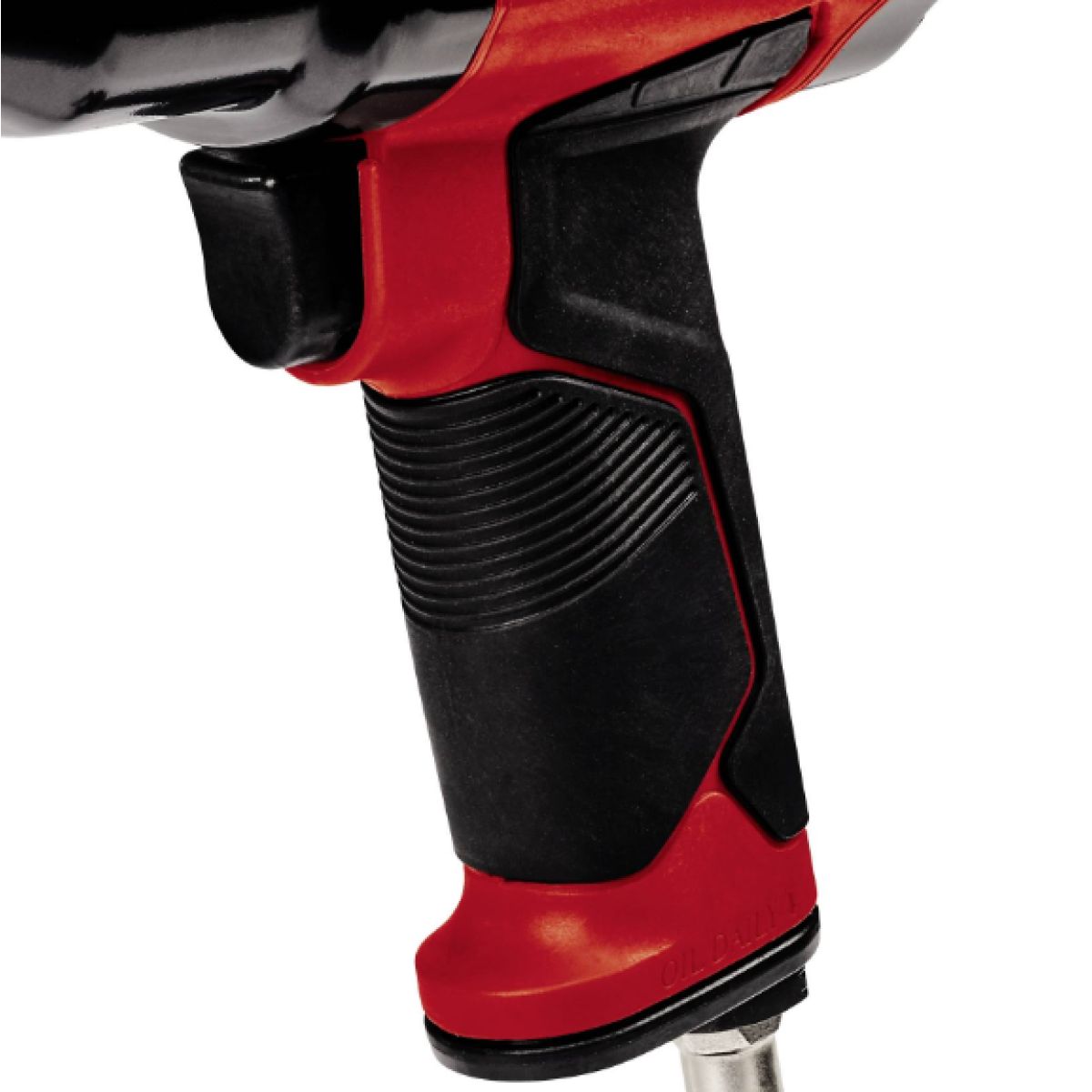 The Einhell compressed air impact driver TC-PW 340 takes on the work in the home, workshop and garage powerfully. The impact driver has a maximum torque of 340 Nm. The non-slip rubberized grip ensures safe and pleasant working in any situation. Equipped with left (single-stage) and right-handed rotation (three-stage), the compressed air impact driver has a variety of tasks. The impact driver offers best performance from an inner diameter of 9 millimeters. The maximum working pressure is 6.3 bar, the maximum thread size is 14 millimeters. The equipment includes 8x sockets in the usual sizes 8/10/11/13/17/19/21/22 mm as well as 1x oil bottles and 1x plug nipple. The compressed air impact driver TC-PW 340 from Einhell is thus immediately ready for use. Supplied in a practical transport and storage case.