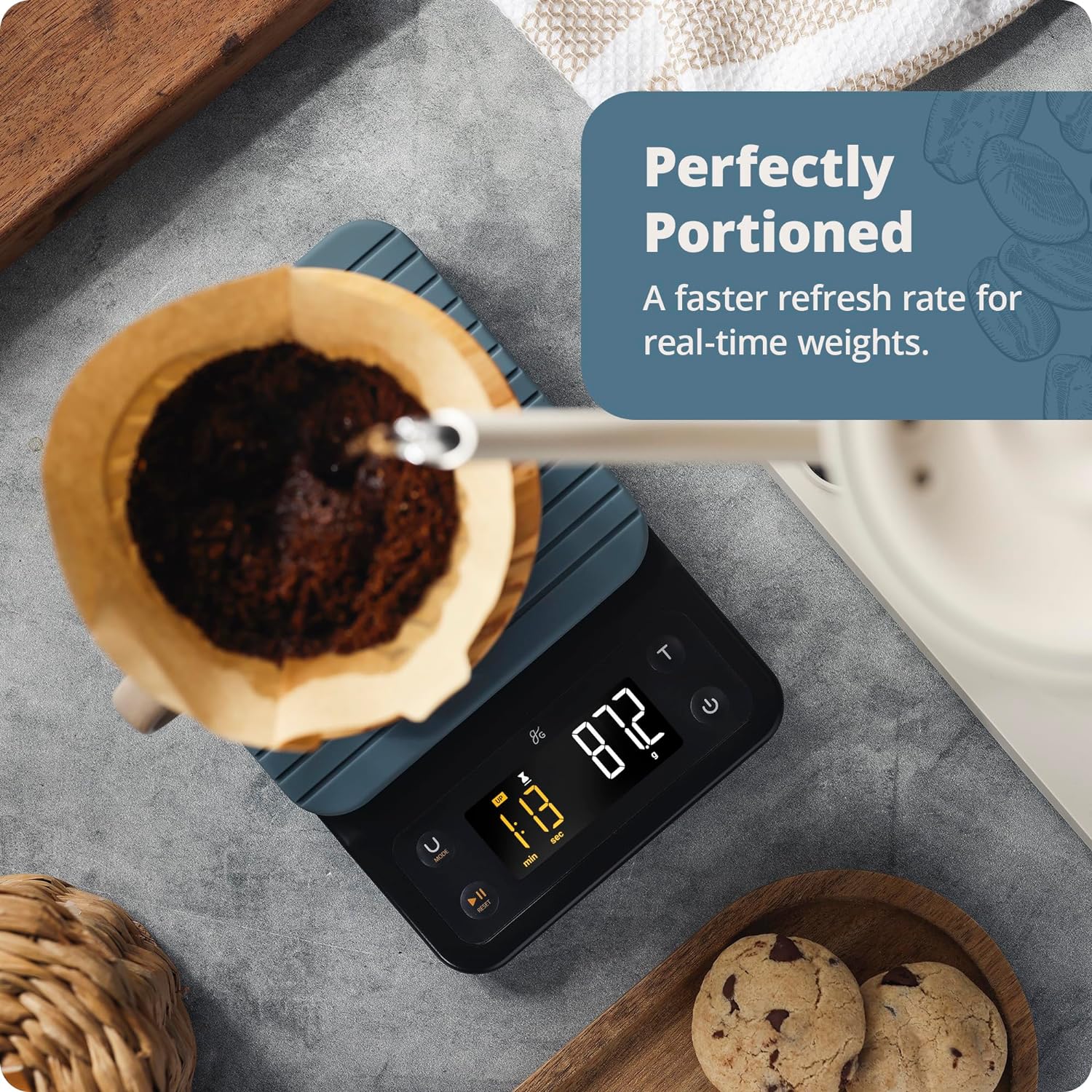 𝗣𝗲𝗿𝗳𝗲𝗰𝘁 𝗳𝗼𝗿 𝗣𝗼𝘂𝗿-𝗢𝘃𝗲𝗿 𝗖𝗼𝗳𝗳𝗲𝗲: This precision scale features a 0.1g resolution and near real-time refresh rate, ensuring accurate measurements for your V60, French press, and espresso brewing, with a weight limit of up to 3 kg