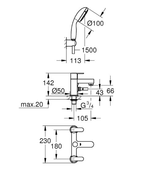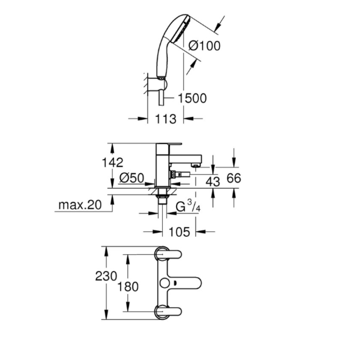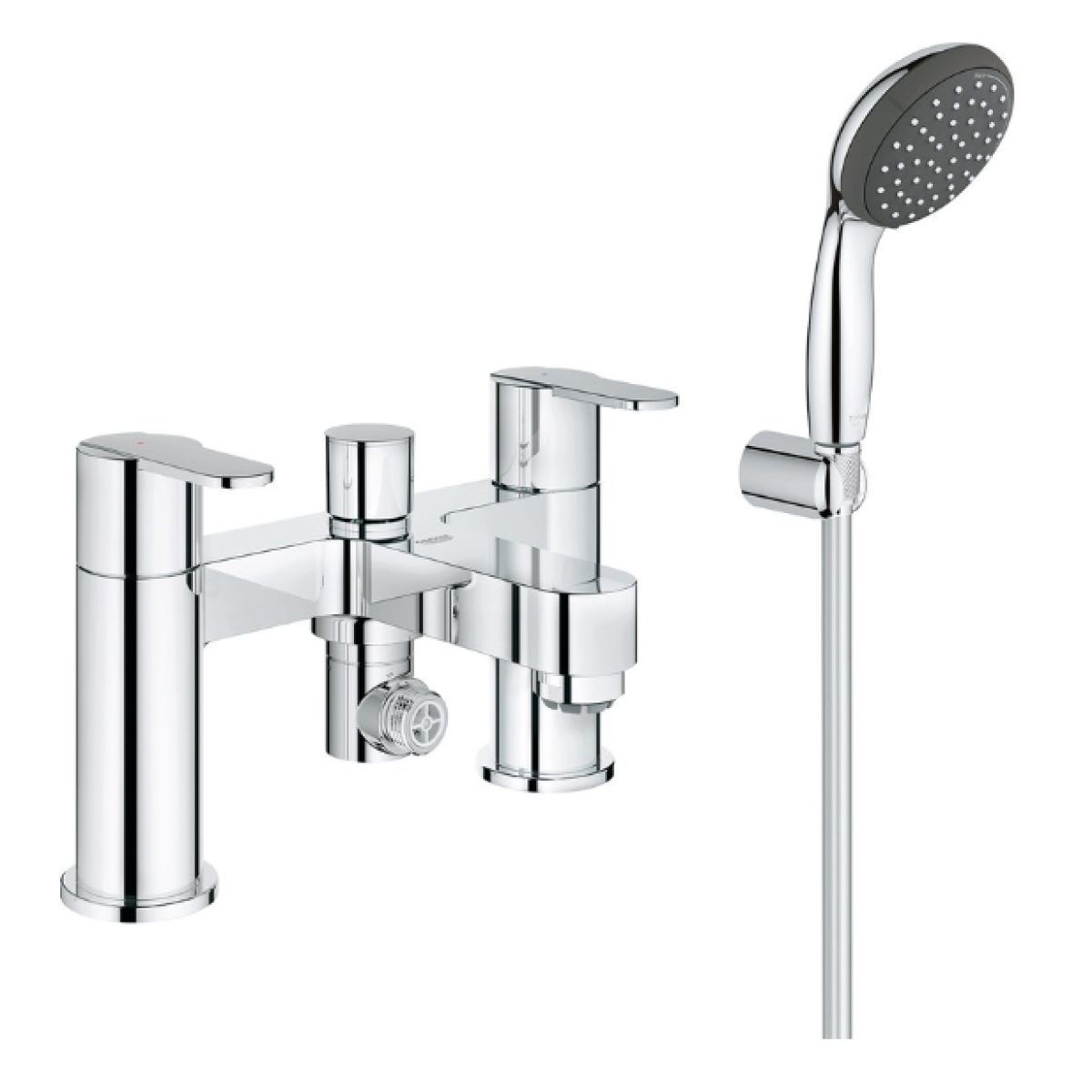 The Grohe Get bath shower mixer tap comes complete with handset, hose and wall mounted holder included. A great option to upgrade on existing bath taps, the Grohe Get bath shower mixer will use less water while improving water flow. Effortless to install and maintain, a gentle wipe is all that is needed to remove any marks from the scratch resistant chrome coating of the Grohe Get bath shower mixer tap.