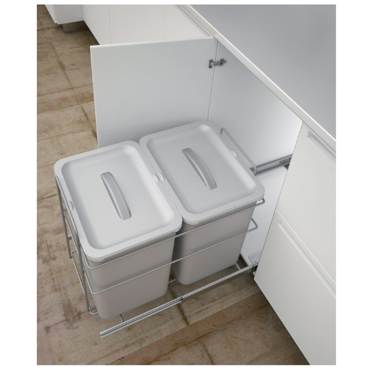 The light plastic material resists wear and is easy to wipe clean in case of spills. Each bin comes with a lid to keep your rubbish inside to prevent overflow and contain foul smells. The double bin containers allow you to separate your waste for paper, plastic or glass recycling and landfill waste, making it easier to recycle responsibly.