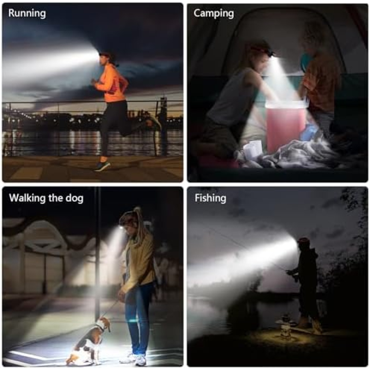 Safe and Portable: The head torch can work safely and stably for a long time with high energy efficiency and low heat dissipation function. Portable headlamp weighs only 0.18lbs,which will free your hands.