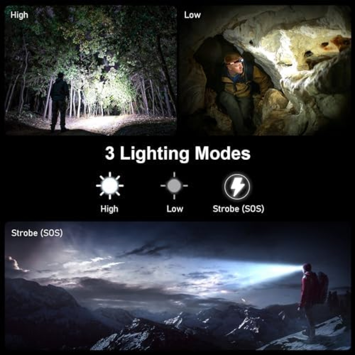 3 Adjustment Modes: One-click control 3 light emitting modes-high/low/strobe. Meet the lighting needs of different situations and people. Provide you with the strongest light in strong mode. Low mode provides illumination while avoiding fast power consumption. Strobe mode is especially useful when in an emergency.