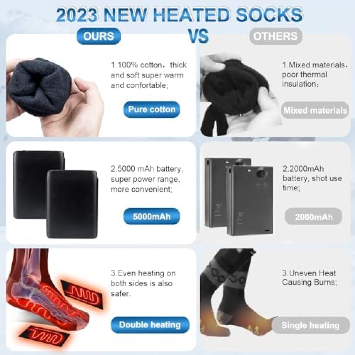 Heated Socks, 5000mAh 10V Electric Rechargeable Heated Socks for Men Women