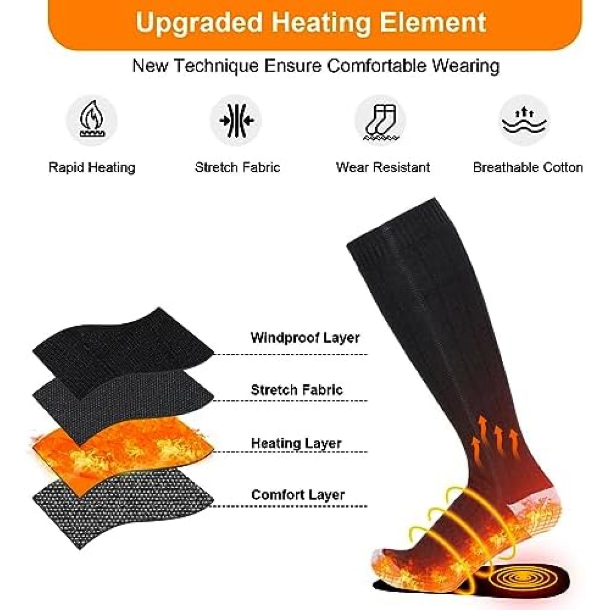 🔥 【Ideal Gift in Winter & Perfect Christmas 】:The heated socks hold the whole day warm and comfortable, Electric heated socks are great Birthday,Halloween,Christmas,New Year Surprise gifts for your parents, lovers, and friends! If you have any questions, please contact us, we will reply you within 24 hours.12-Month warranty for our heated socks!