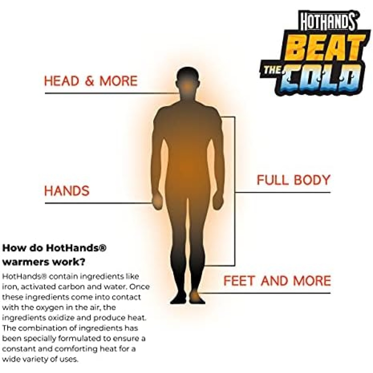 HotHands warmers are single use air-activated heat packs that provide everyday warmth and are ideal for keeping your body warm when the temperature gets cold. They’re available in several styles designed for your hands, feet, and body.