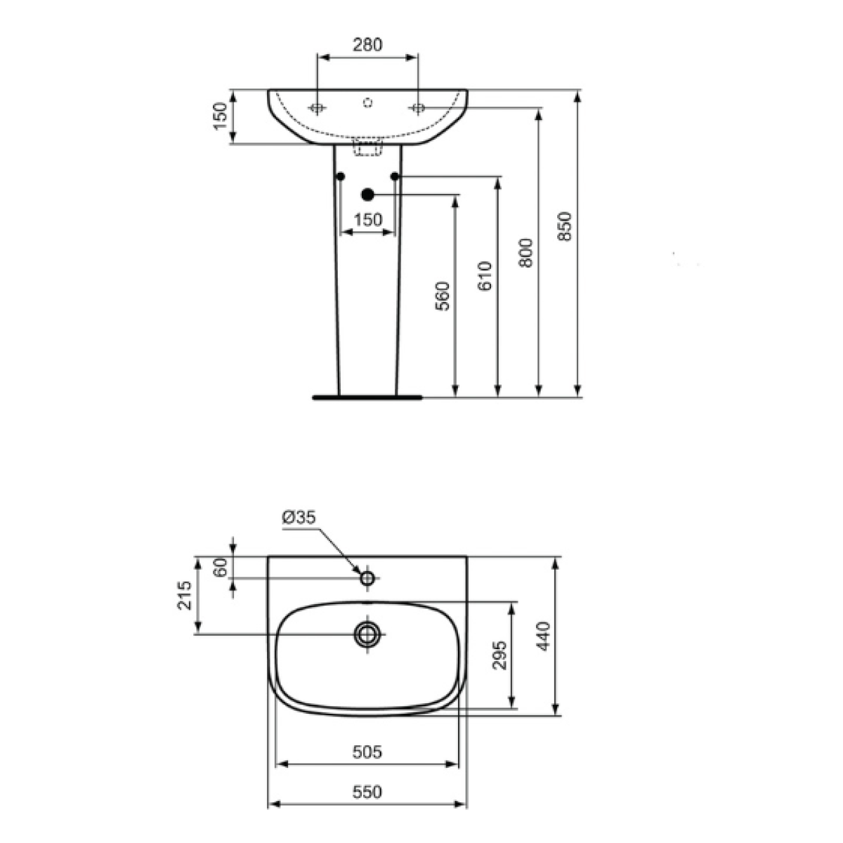 Featuring a smooth and rounded profile with a classic white finish, the sink combines an impressive 55cm basin width with a full pedestal to help you make the most of even the smallest bathroom spaces.