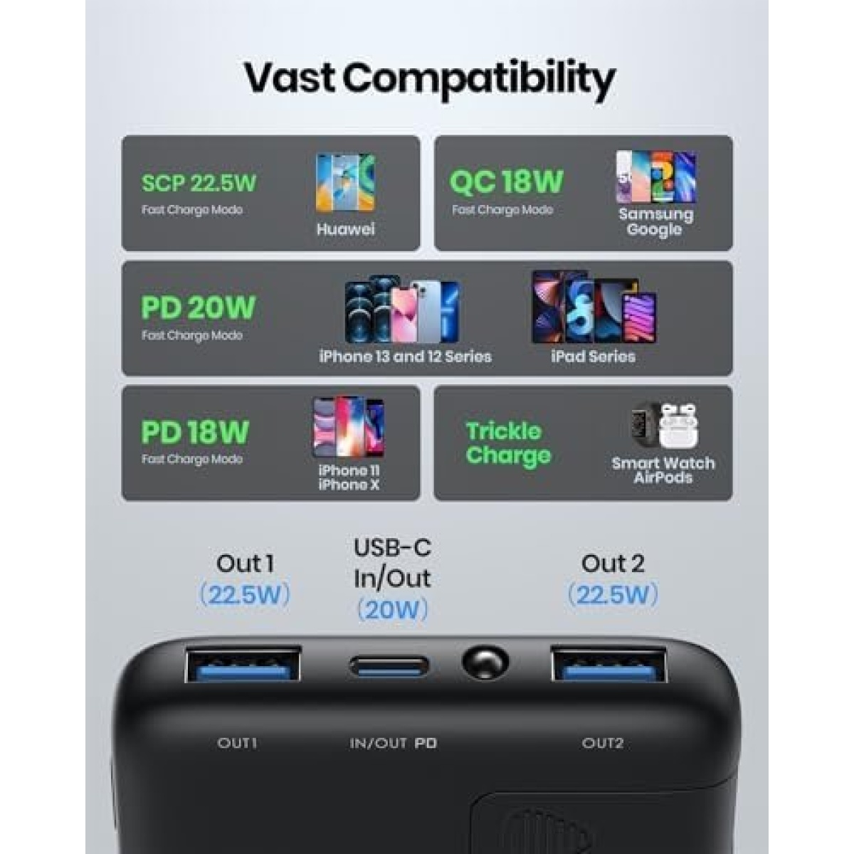 ๐๐๐ฌ๐ญ ๐๐จ๐ฆ๐ฉ๐๐ญ๐ข๐๐ข๐ฅ๐ข๐ญ๐ฒ: INIU iphone portable charger fast charging fits every device from big as iPads to small as AirPods. Plus an automatically-adapted trickle-charging mode, small devices can also get optimized power without affecting battery health.