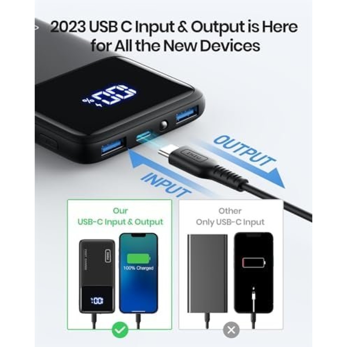 ๐ฎ๐ฌ๐ฎ๐ ๐๐๐ซ๐ฌ๐ข๐จ๐ง ๐๐๐ ๐ ๐๐ง๐ฉ๐ฎ๐ญ & ๐๐ฎ๐ญ๐ฉ๐ฎ๐ญ: Unlike most chargers featuring a USB C input only, INIU portable phone charger iphone has a USB C In & Out port to perfectly fit your new iPhones, iPad and all upcoming USB C devices.