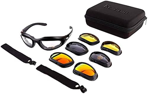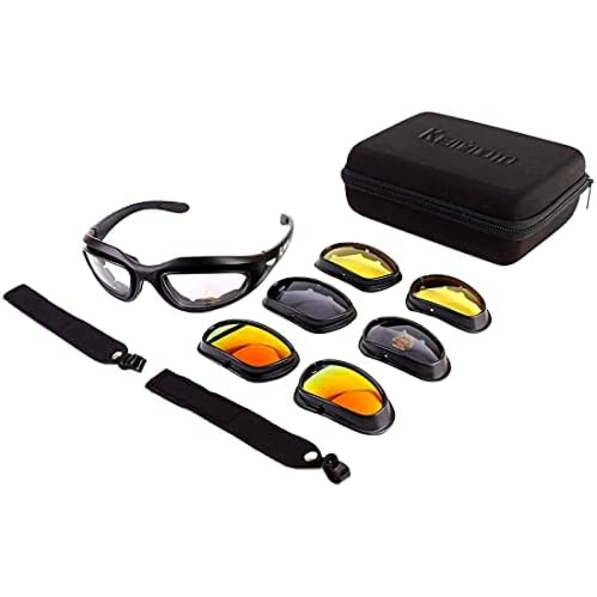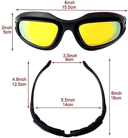 ⭐【PACKAGE INCLUDES】—1*Matte black plastic frame with rubber ear pads, 4*Lens Kit, with UV Protection in Clear, Yellow, Smoke Lenses, and Black. 1*Sport headband, 1*pouch, 1*cleaning cloth, 1*hard case. Our motorcycle riding goggles glasses are packed in foam-padded which is convenient to carry and never worried about losing your goggles anymore.