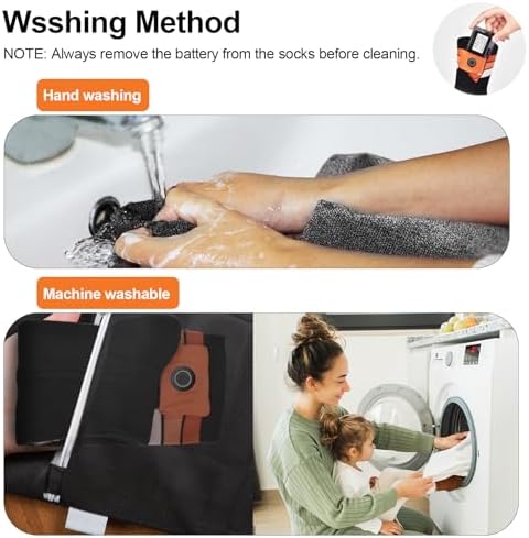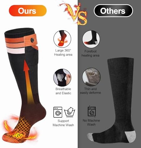 🧦【Long-Lasting & Powerful Battery】Equipped with a 7.4V 22.2WH battery that can be used continuously for up to 10 hours after a full charge. Our batteries are coated with PVC film coating technology, which makes the batteries smaller in size and lower in weight, and better fit the socks and not easy to fall out.