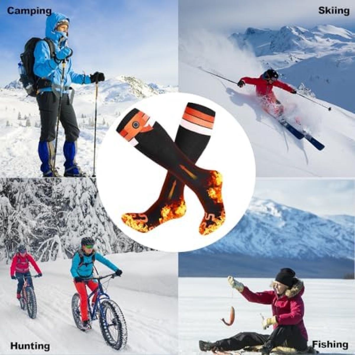 🧦【Suitable for Various Outdoor Activities】Wearing these heated socks in winter means saying goodbye to the cold. They are perfect for hunting, skiing, fishing, hiking, dog walking, snowboarding, motorcycle riding, cycling, and sports events, ensuring rapid warmth throughout your feet. Heated socks keep you warm and comfortable all day, making them the best birthday, Halloween, Christmas, and New Year surprise gifts for parents, lovers, and friends.