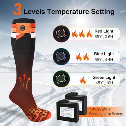 LATITOP Heated Socks for Men Women, 7.4V 22.2WH Rechargeable Battery Electric