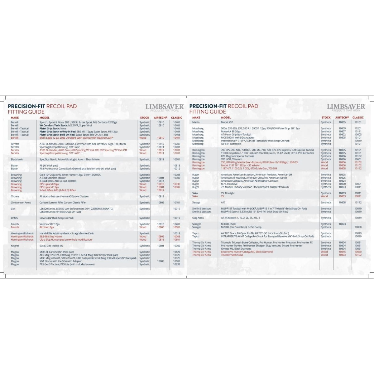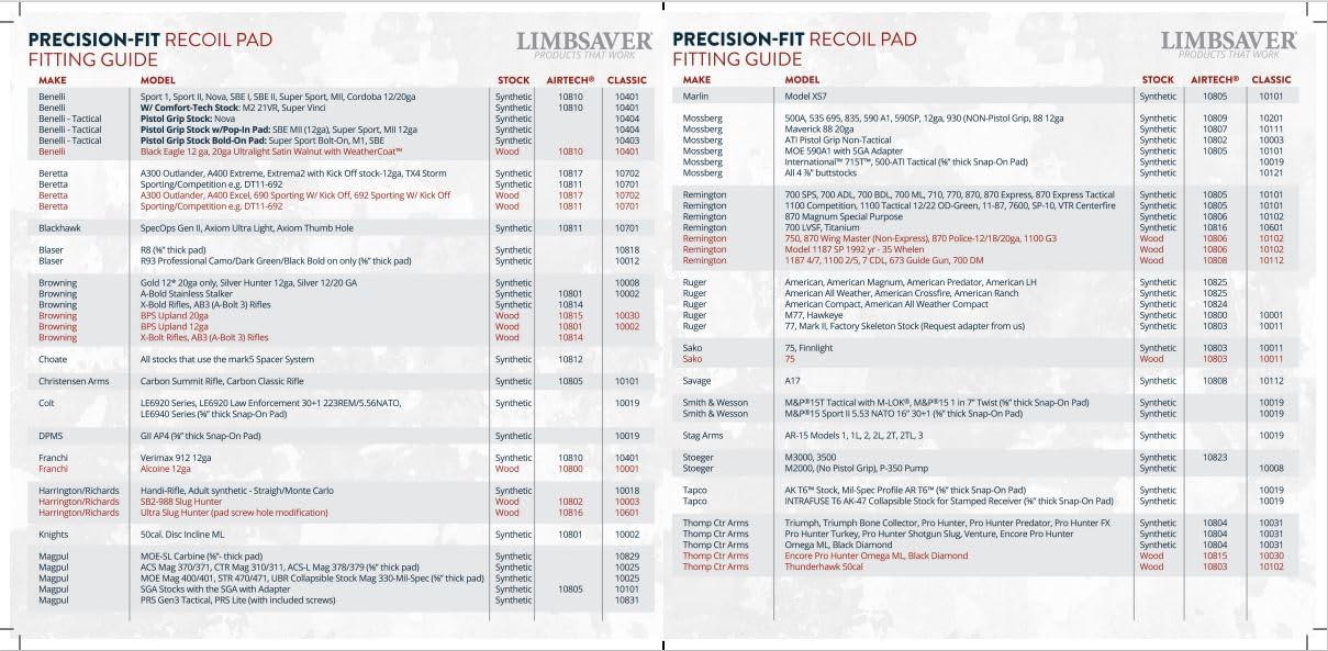 It’s made from LimbSaver’s proprietary NAVCOM technology (Noise and Vibration Control Material), which effectively absorbs a wide range of frequencies to dissipate energy and vibration. This recoil pad also features a no-slip surface that stays in place even in the rain. See the following for model compatibility: