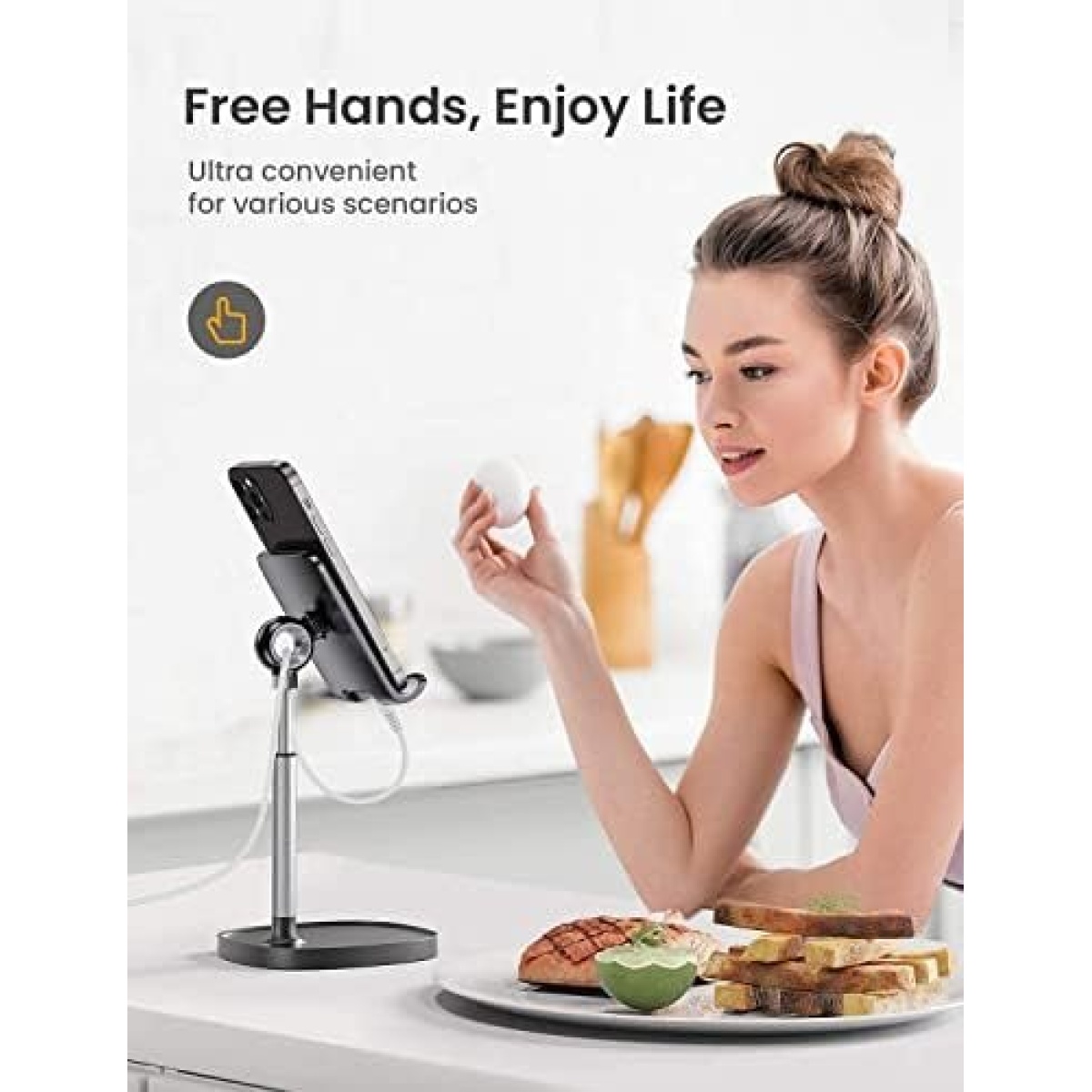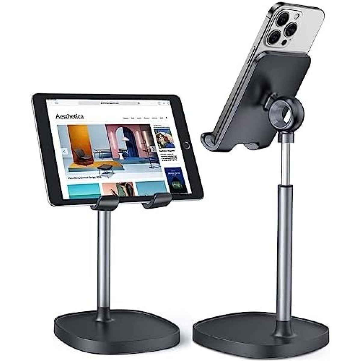 WEIGHTED ANTI-SLIP BASE: This cell phone stand for desk is equipped with a weighted base and an aluminum alloy rod. Therefore, this iPhone stand holder is stable enough to support all smartphones or small tablets, such as 2023 iPad Mini, iPhone 15 14 pro max 13 Pro/13 Mini/12/12 Pro/12 Pro Max/12 Mini/iPhone 11/11 Pro/Max/X/MAX/XR/8/8P, Samsung Galaxy S22, S22, Note 10/9/8/Plus, S10/S9/S8, Kindel, Switch, iPad Mini,iPad Air, etc.We recommend the most stable compatible device size is 4-10 inchs