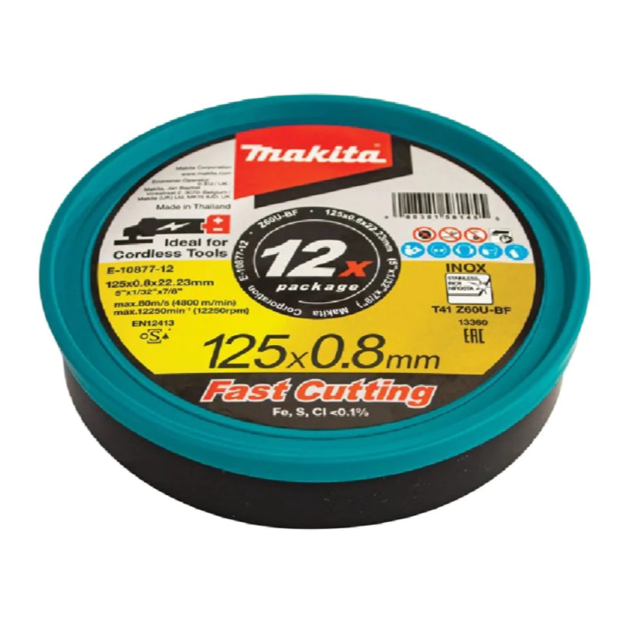 Makita E-10877-12 12 Pack 125mm x 0.8mm x 22mm Elite Inox Cutting Disc