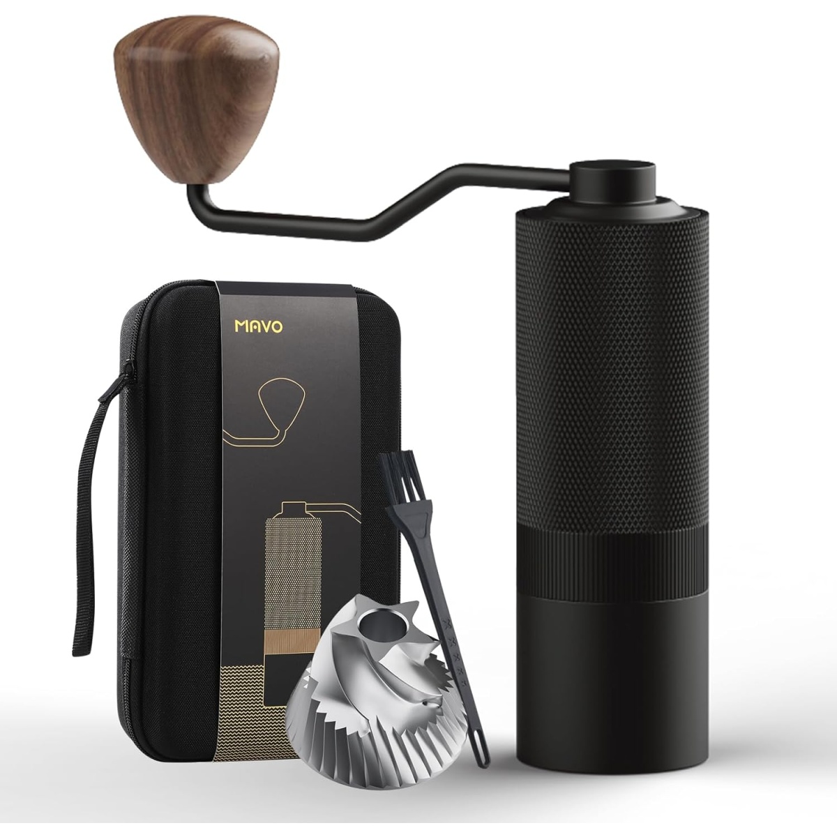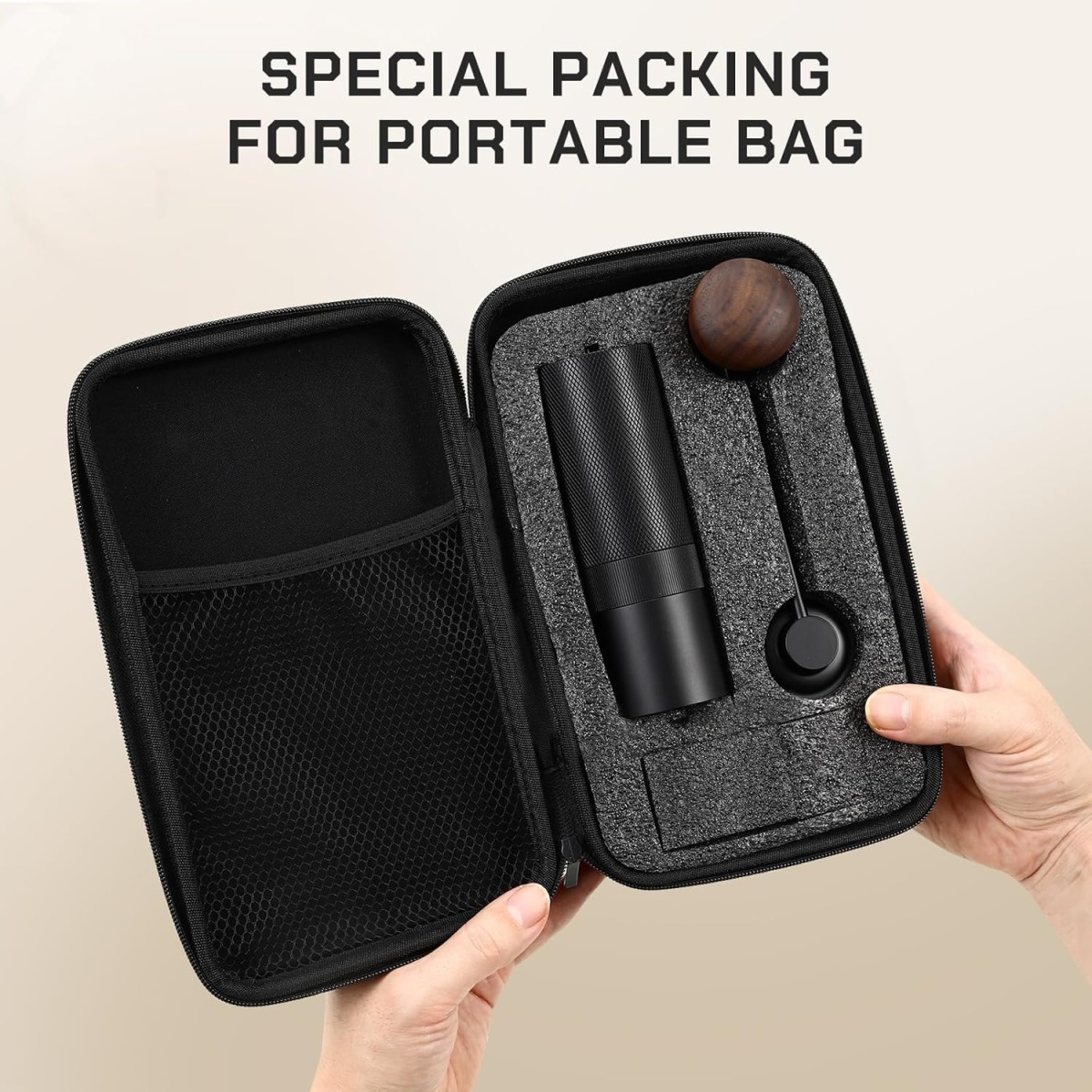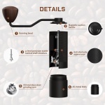 Excellent Grindability – The manual burr coffee grinder milling blade is made of 55-58 HRC hardness, which is machined by 5-axis CNC for uniform grinding with virtually no overly coarse particles and the generation of fine powder is minimized. Adoption of μ-grade precision fine grinding of the large axis has resulted in a significant increase in the precision of the center axis.