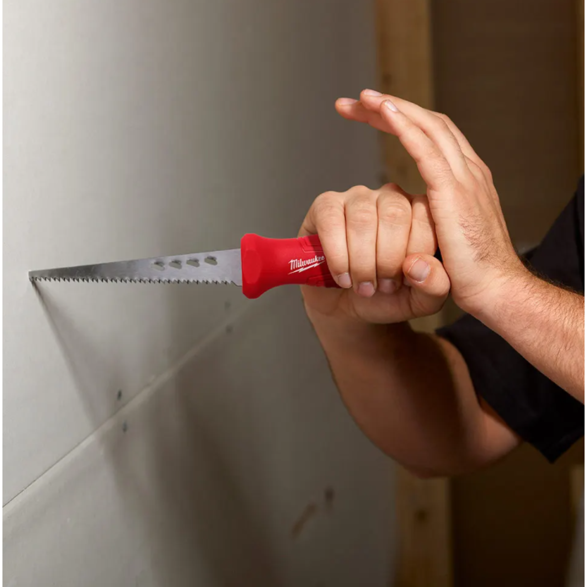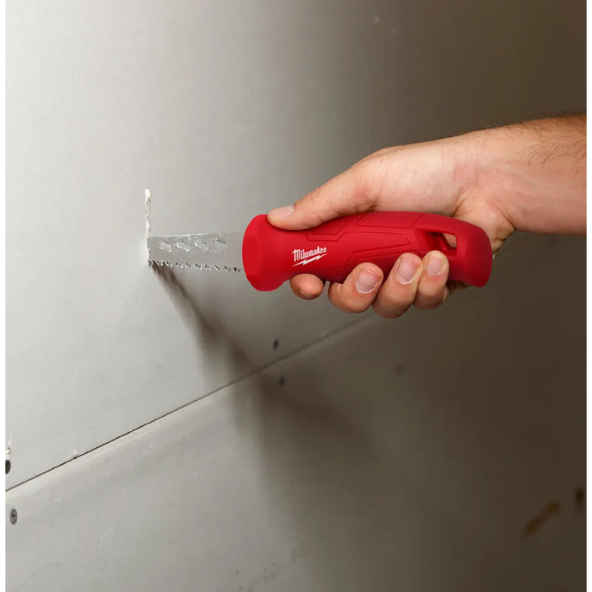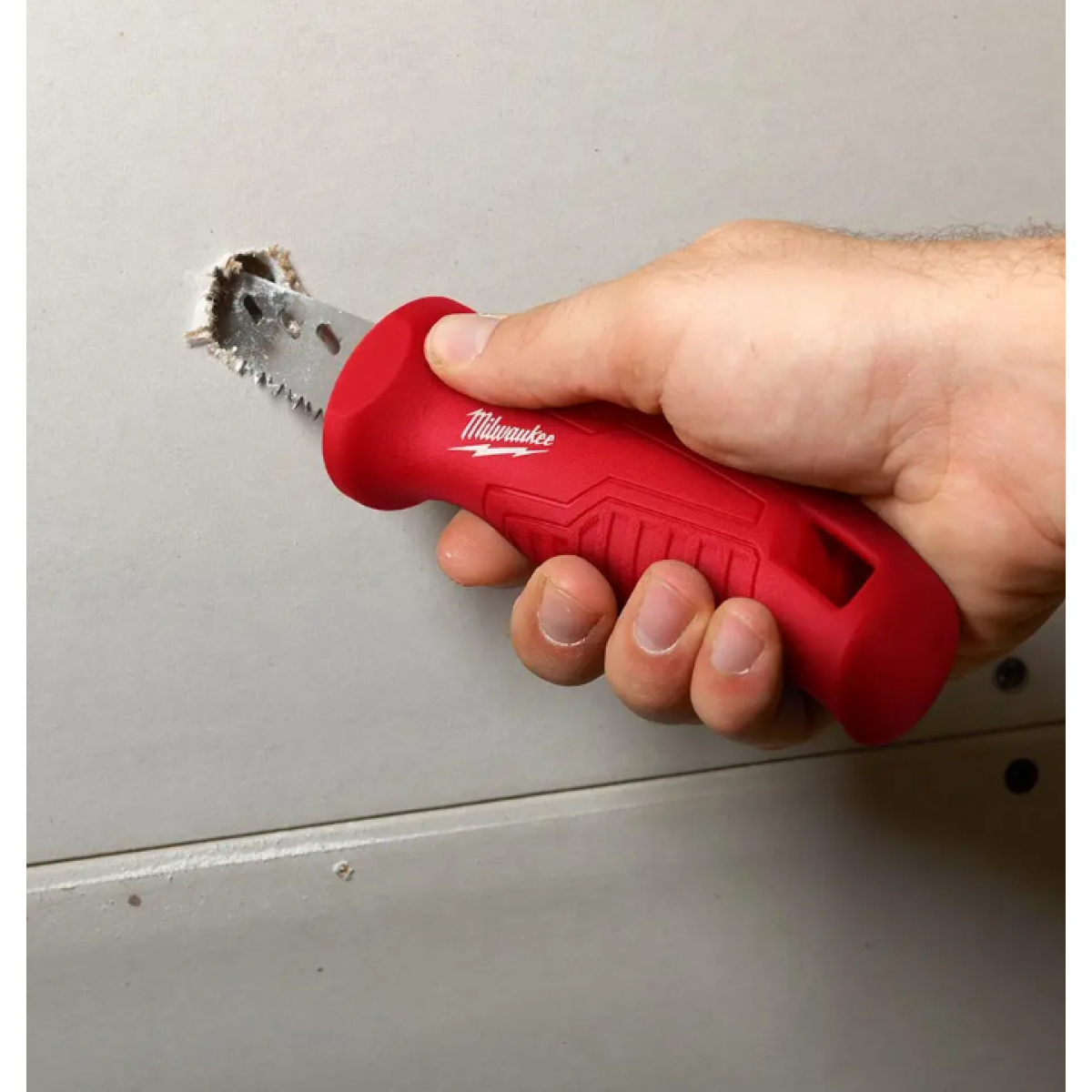 The MILWAUKEE Rasping Jab Saw is the only jab saw on the market to integrate rasping holes along the side of the blade to rapidly expand holes or smooth rough edges of sheetrock after a cut has been made. Complete with rubber over mold to increase comfort and reduce hand slippage, the new saw also features a thick 152mm (6”) plaster/drywall blade for increased durability and life.