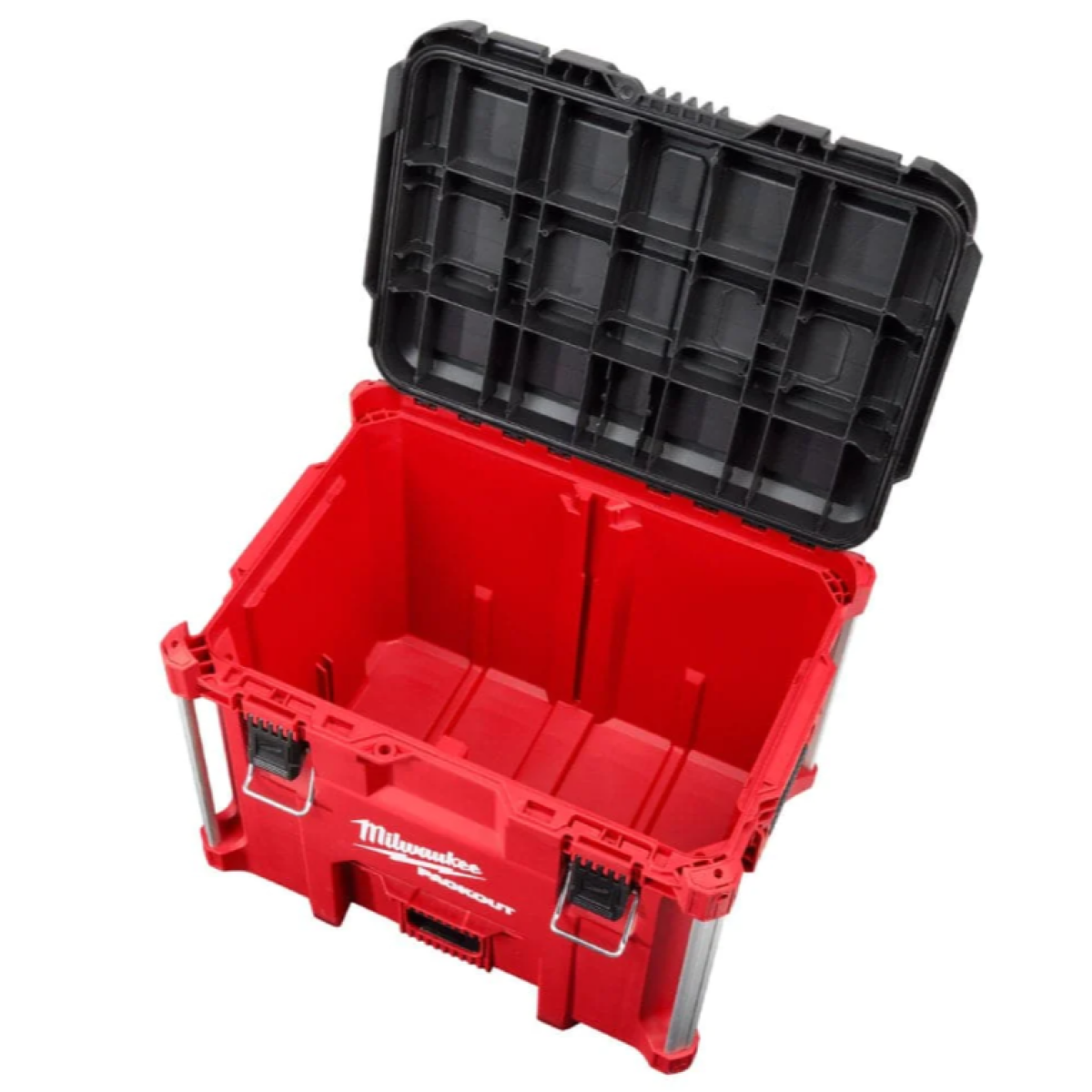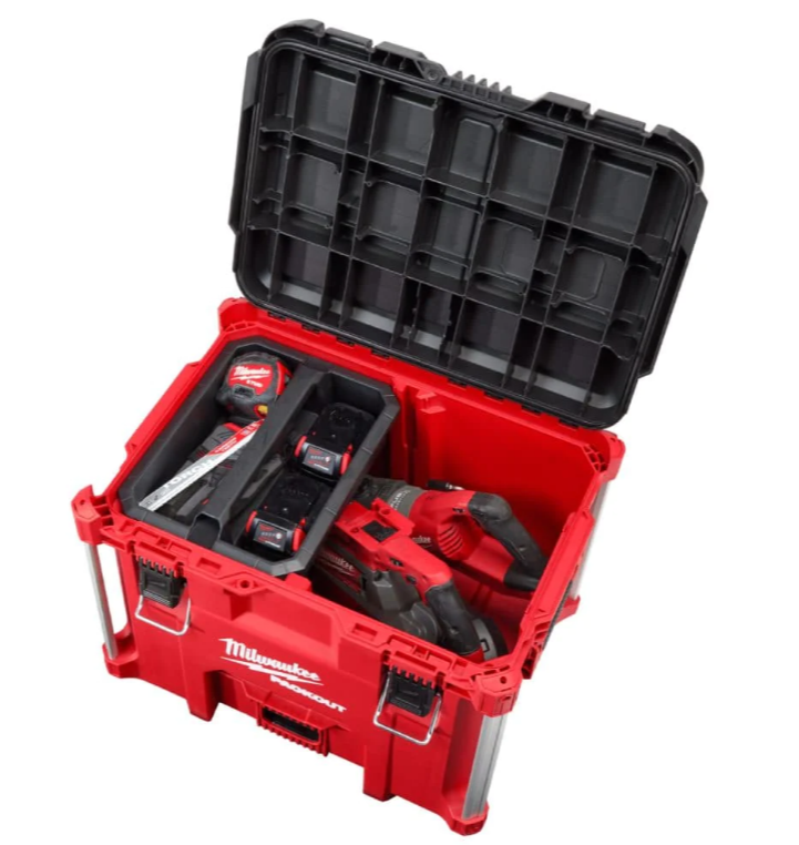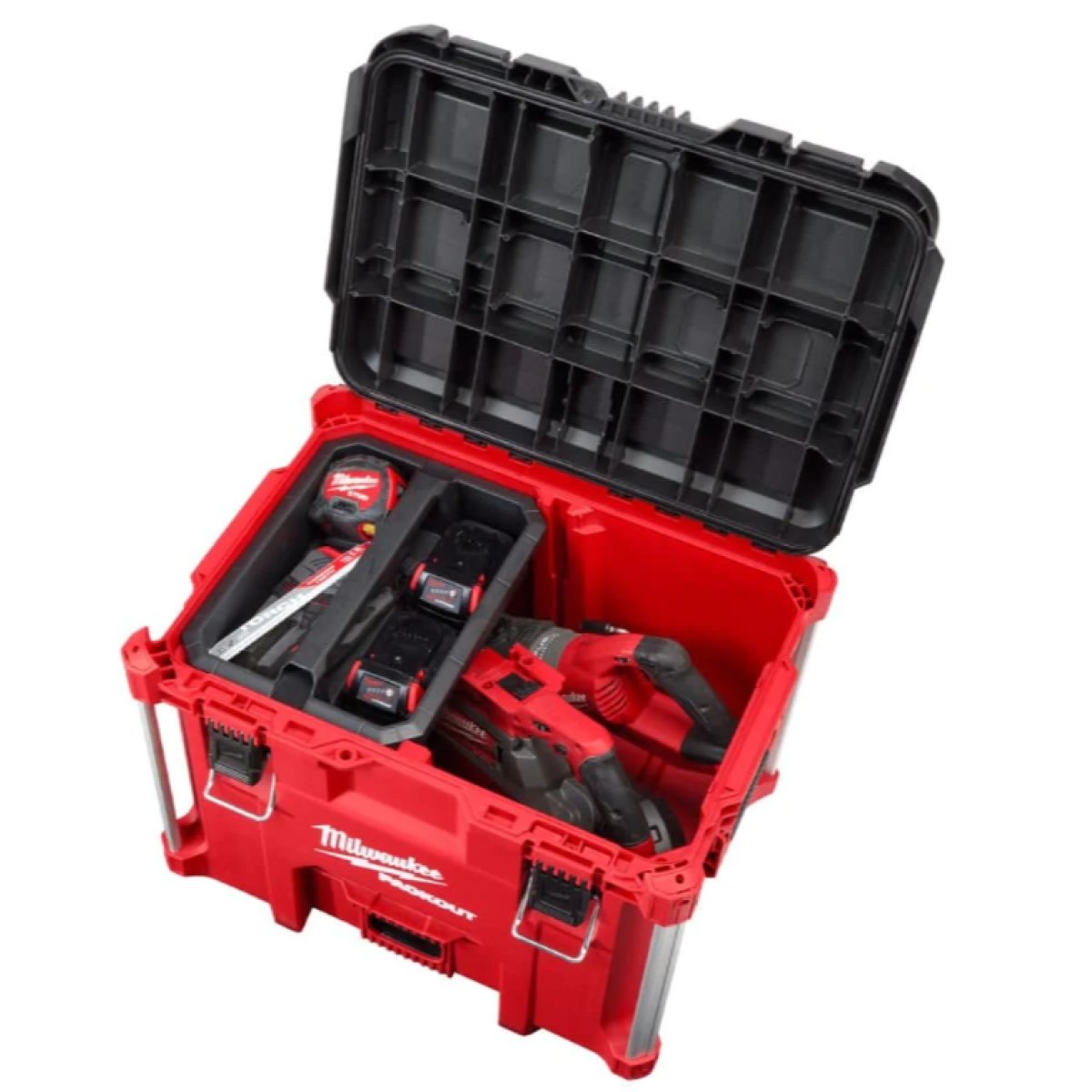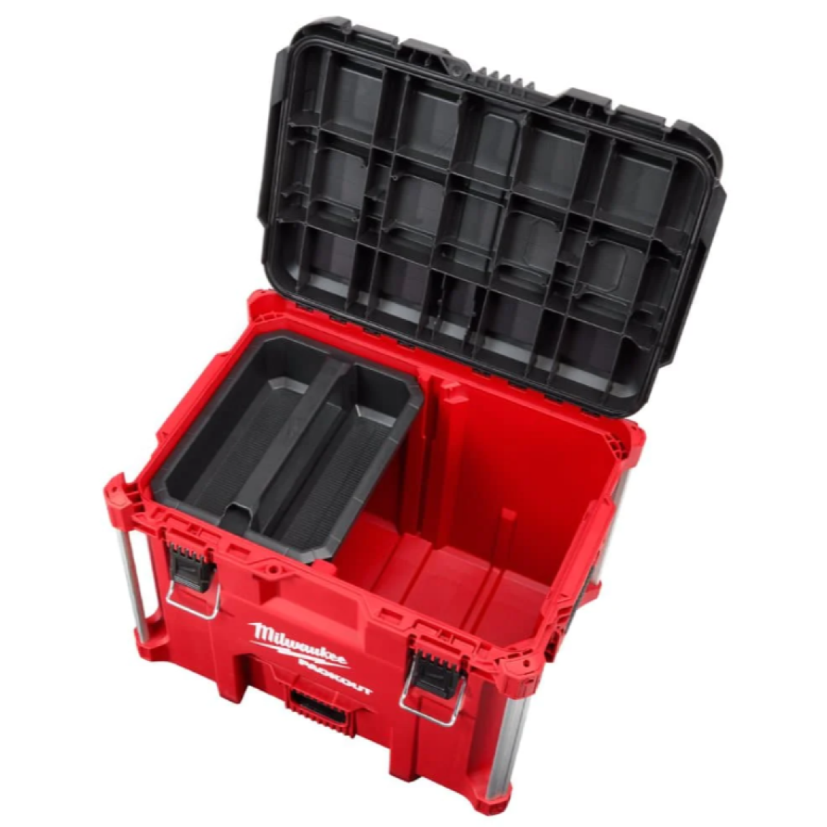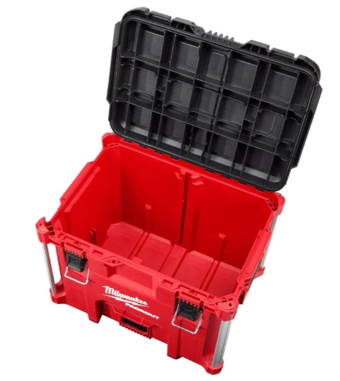The PACKOUT™ XL Tool Box is constructed with impact-resistant polymers and metal reinforced corners to withstand harsh jobsite conditions. The tool storage solution connects with all other PACKOUT™ system components via integrated locking cleats and has a 45kg weight capacity. An IP65 rated weather seal protects tools and accessories from rain and other jobsite debris. The interior organization tray keeps your equipment organized to fit your needs. The PACKOUT™ modular storage system allows you to customize and build your storage system to easily transport and organise tools and accessories. MILWAUKEE™ PACKOUT™ is the industry’s most durable and versatile storage system.