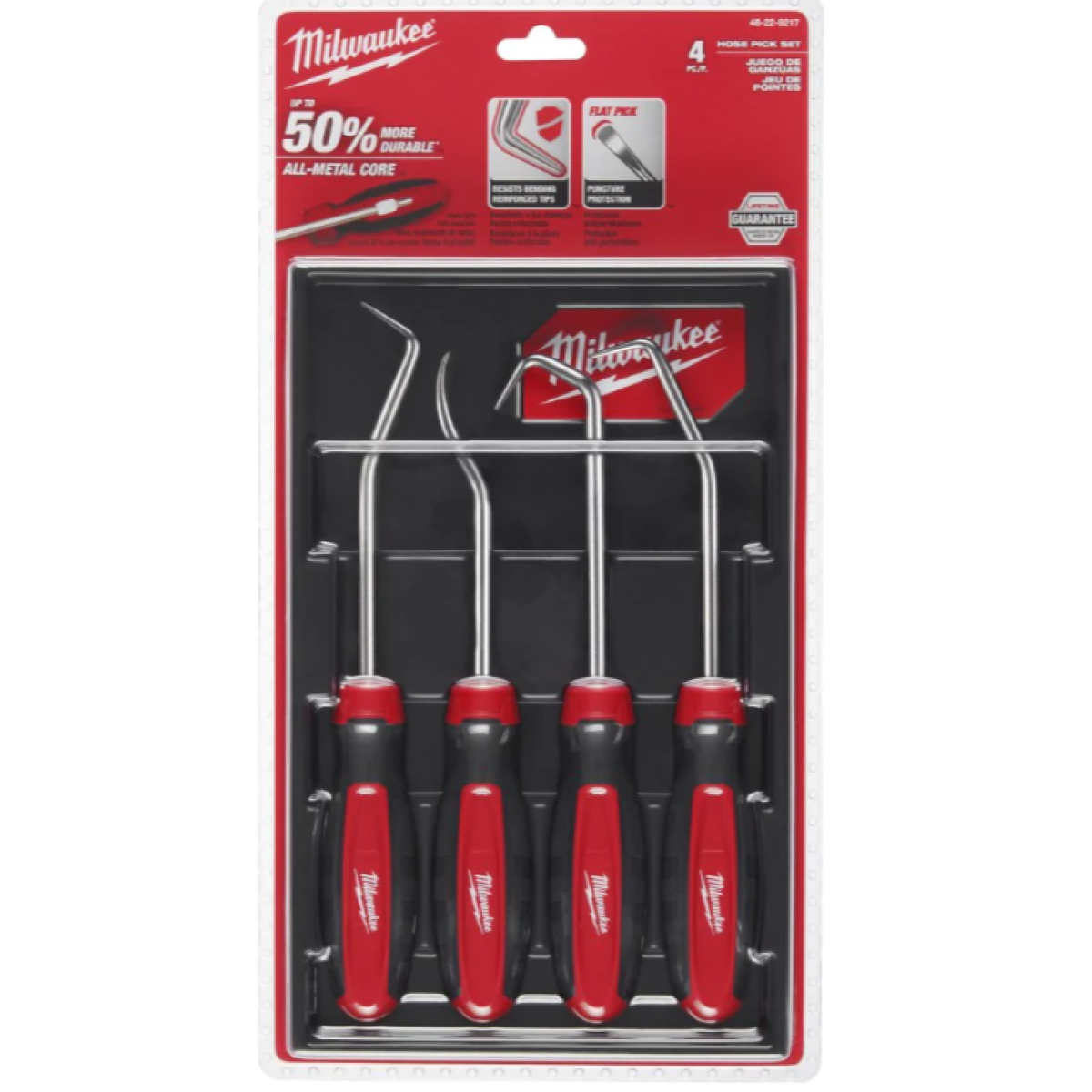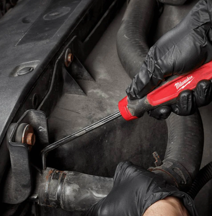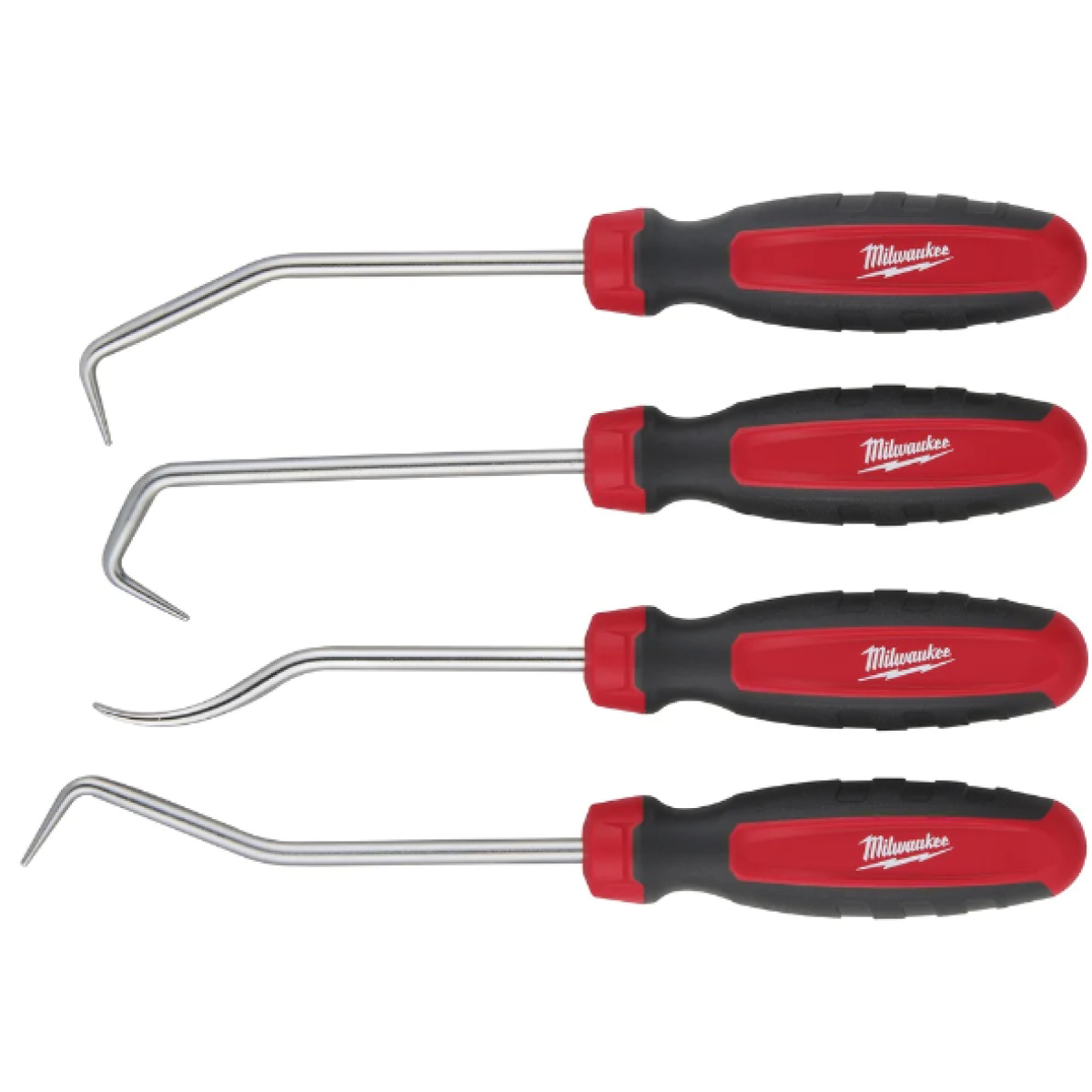The 4pc Hose & pick set feature an all-metal core for up to more durability. Each pick has a specific angle for different applications whilst the reinforced tip resists bending when loosening stubborn hoses. The flat pick provides puncture protection and reduces damage to hoses. Our Comfort grip handles gives the user increased tool control and comfort. This set features a hook, 90°, 45°, and flat hose pick along with a durable long-term storage tray for easy access and organisation. These chrome-plated picks provide superior rust protection.