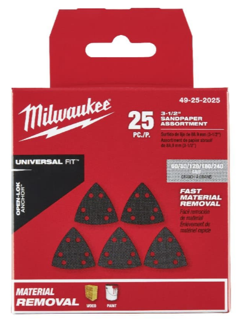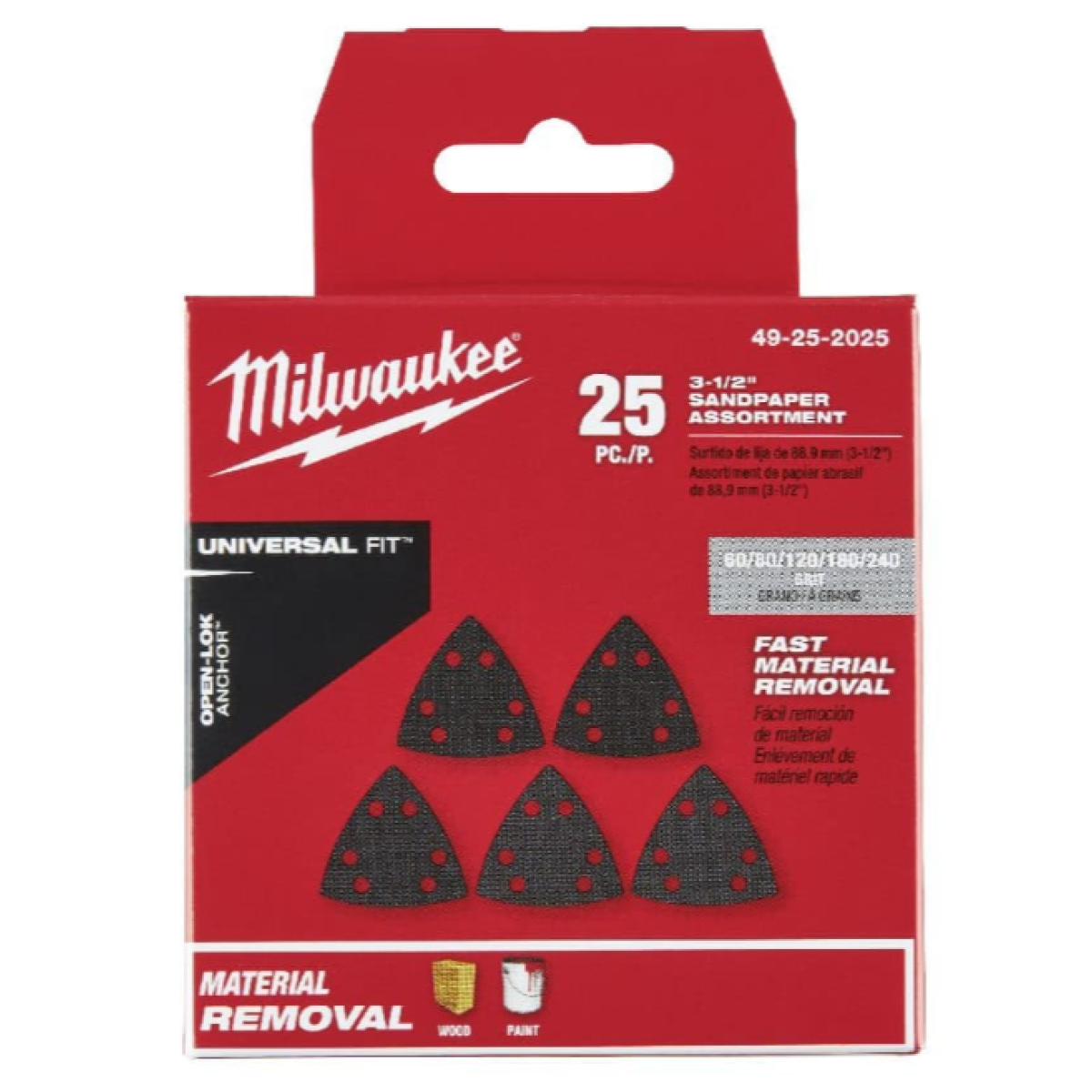 Milwaukee 49252025 25 Piece OPEN-LOK Triangle Multi-Tool Sand Paper Set
