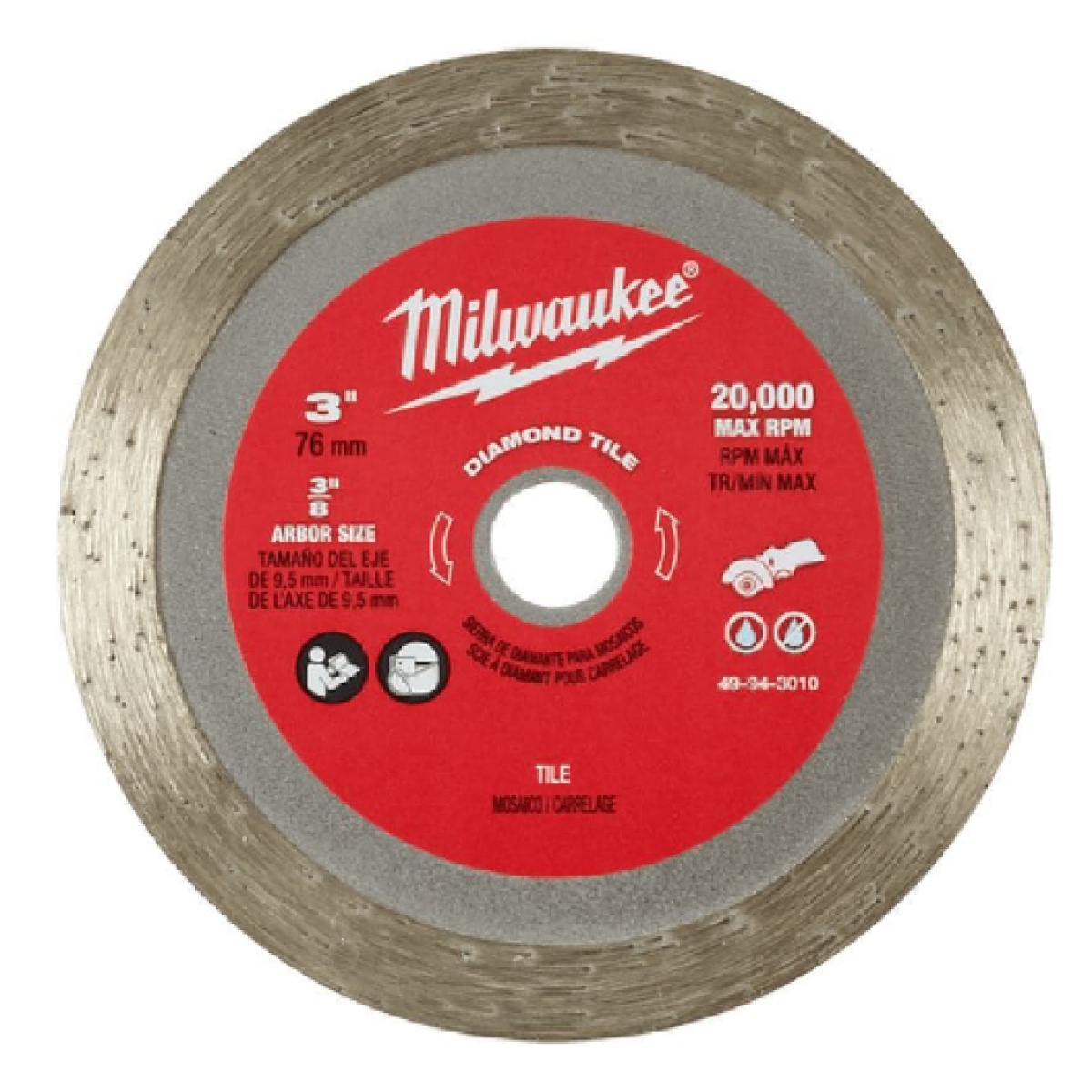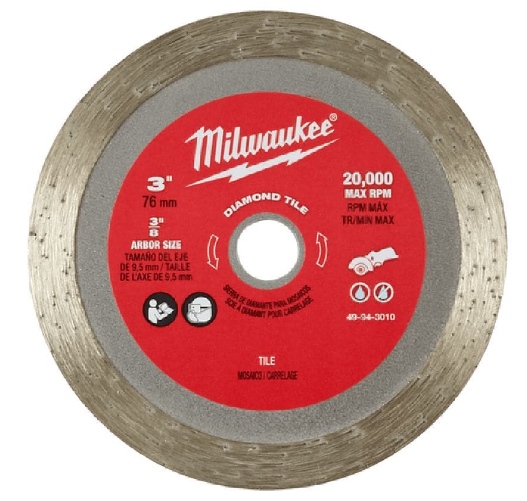 The Milwaukee® 49943010 is a 76mm x 1mm x 10mm (3” x .040″ x 3/8”) cut-off wheel. Intended to cut ceramic or porcelain tiles, either wet or dry, the 76mm (3″) disc diameter makes it easy for the user to manoeuvre the disc to make notch and rounded cuts to fit tiles as required. when paired with the Milwaukee M12 FUEL™ Cut-Off Tool (M12FCOT-0)