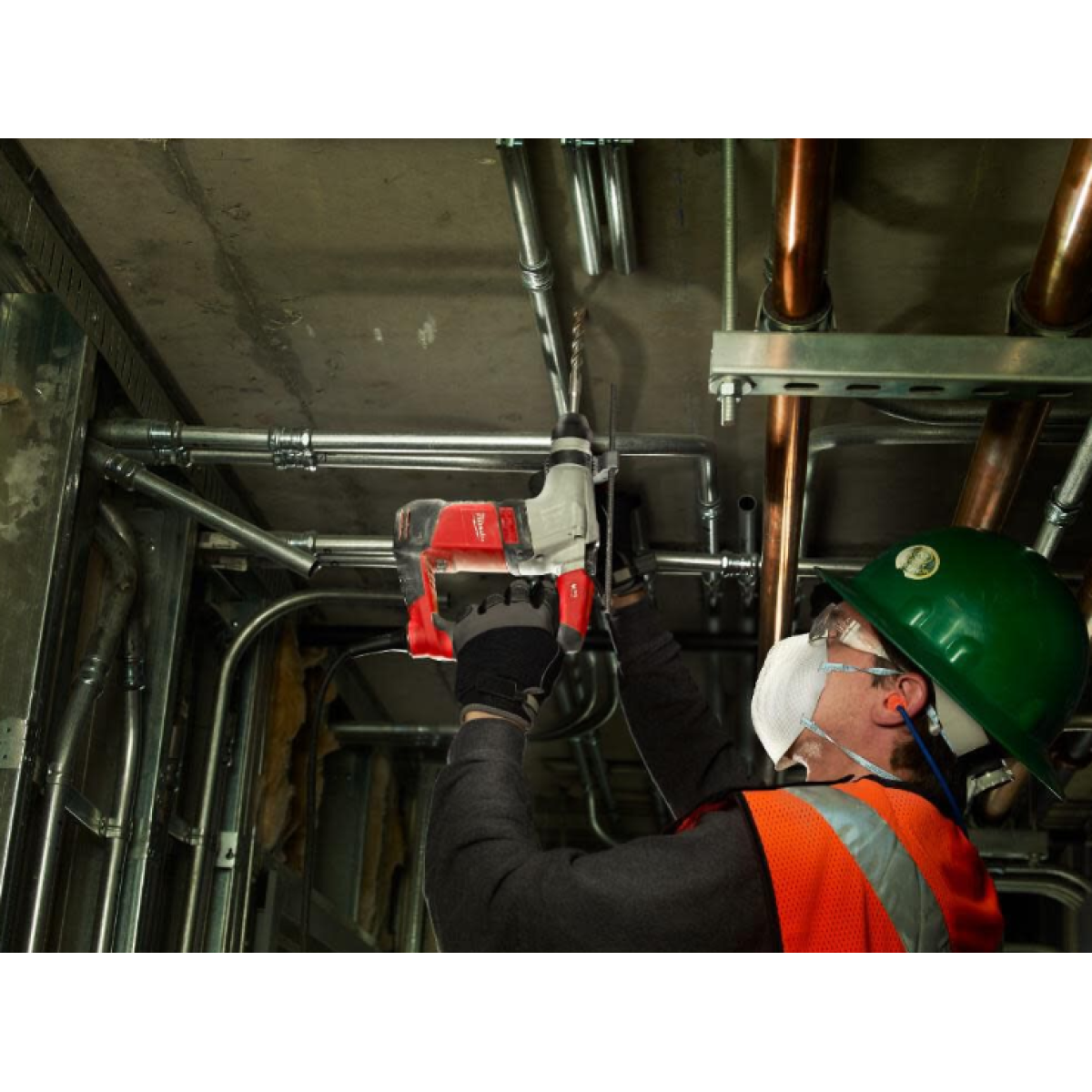 Milwaukee rotary hammer utilizes AVS anti-vibration system to keep you working strain-free