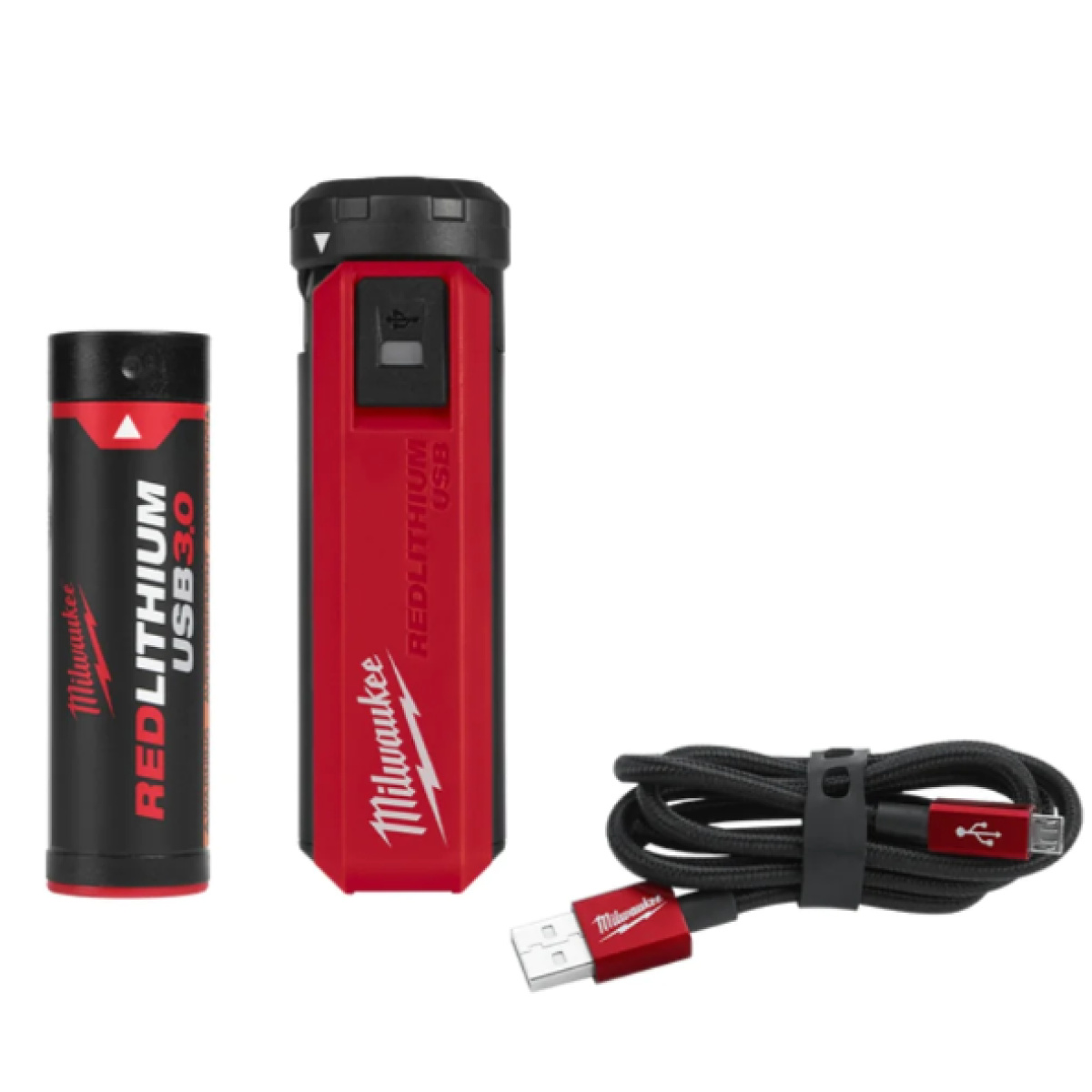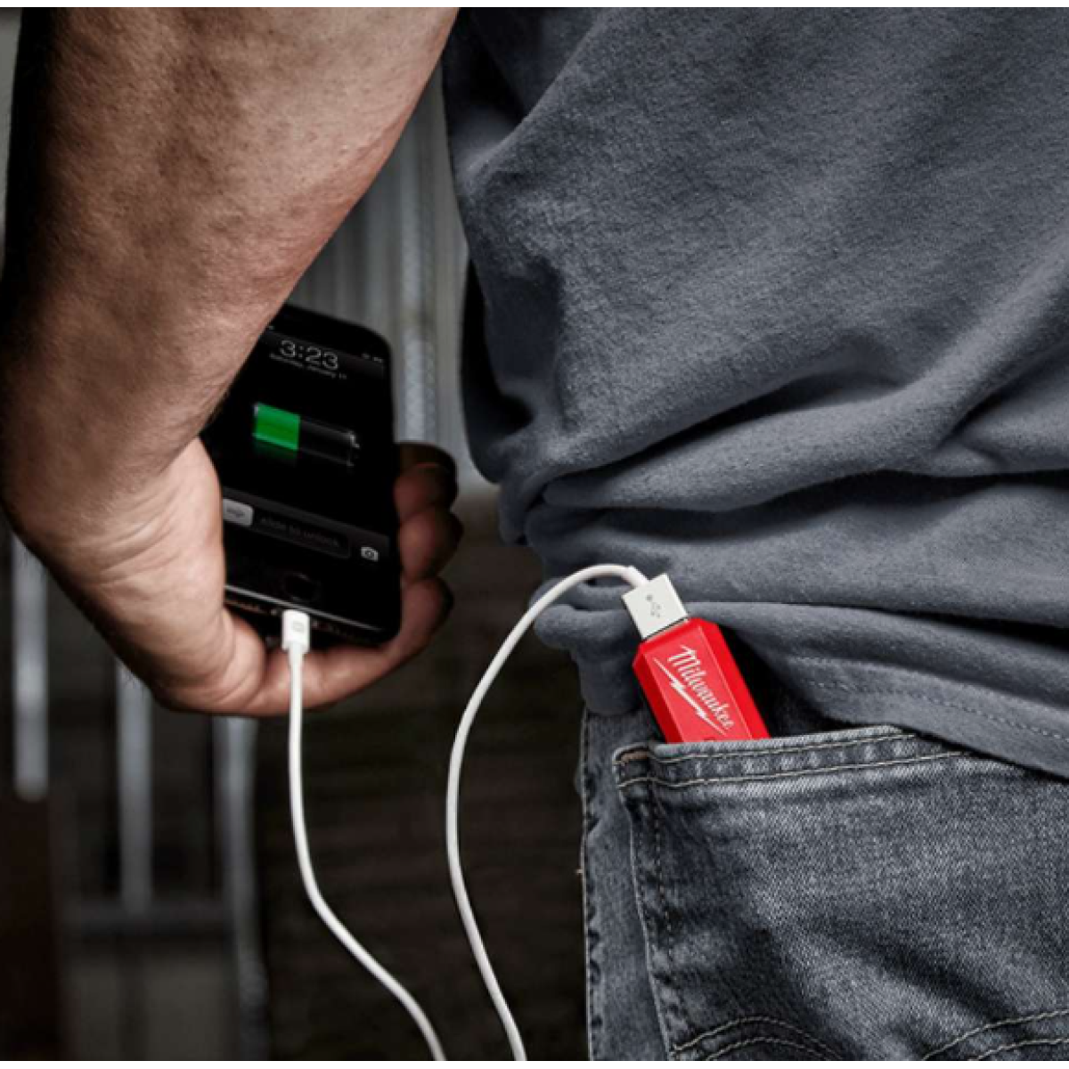 The REDLITHIUM USB Charger & Portable Power Source Kit includes a USB rechargeable power bank and charger, a 60cm heavy duty micro-USB cord, and one of our REDLITHIUM USB 3.0Ah batteries. The portable battery charger allows you to conveniently charge your mobile phone, tablet and wireless headphones both on and off the job site. You can check the charge of your REDLITHIUM USB battery pack with the LED Fuel Gauge. The portable battery pack can easily be recharged via Micro-USB cable from a wall plug or USB power source. Both the REDLITHIUM USB Battery and Portable Power Source and Charger are covered under our MILWAUKEE 2-year warranty.