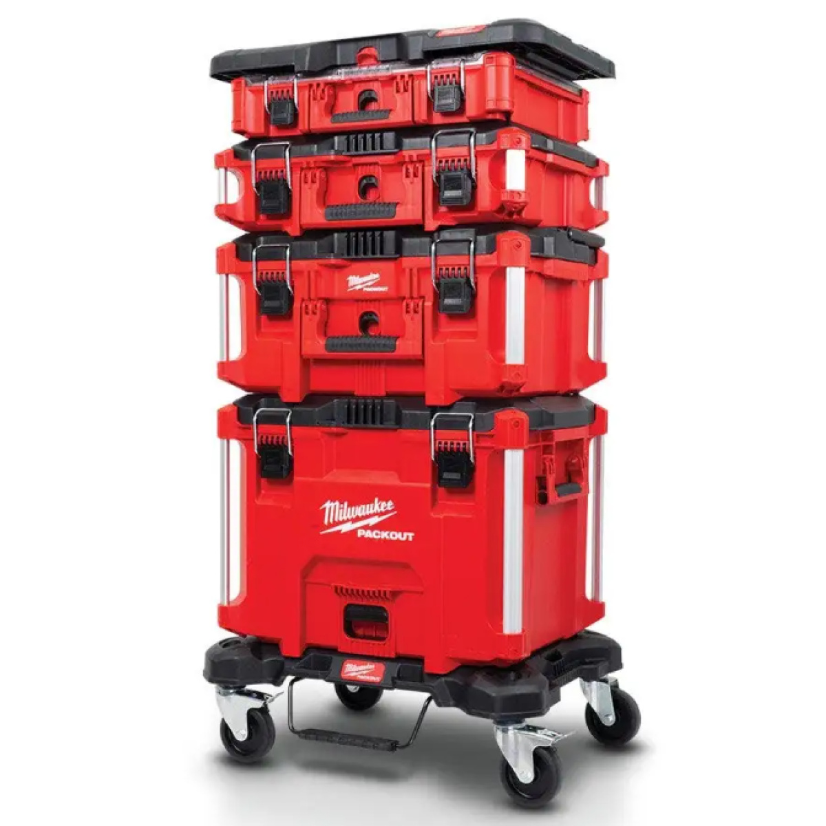 Our PACKOUT™ Modular Storage System is the industry’s most durable and versatile storage system. The MILWAUKEE® PACKOUT™ Dolly is constructed with impact-resistant polymers and smooth roll wheels, providing you up to 113kg of weight capacity in job site conditions. The QUICKSTOP™ Loading Lever helps keep the dolly in place when loading and unloading, providing you with increased productivity on the job site. Our PACKOUT™ Modular Storage System allows you to customise and build your own storage system to easily transport and organise your tools and accessories.