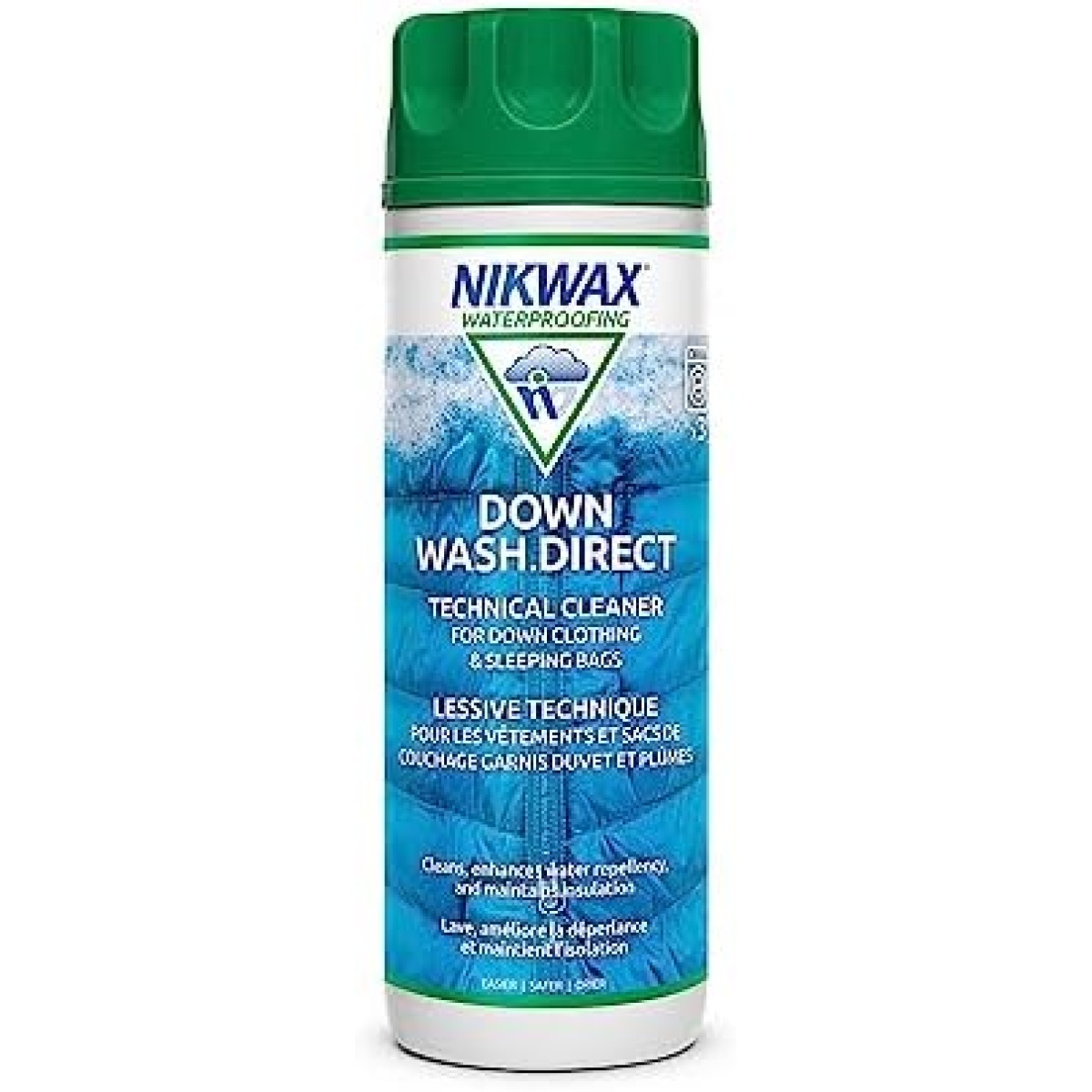 Safe for use on jackets, gear and bedding with down-fill, down blends, or water resistant down (such as Nikwax Hydrophobic Down)
