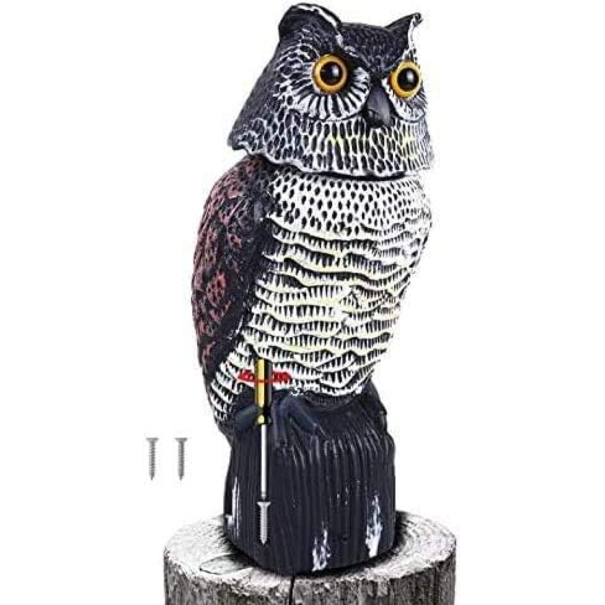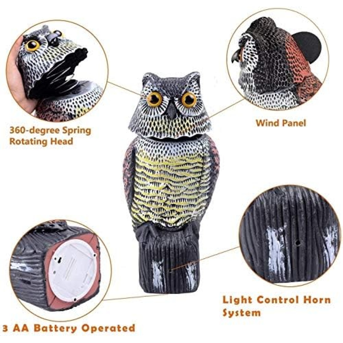 Ohuhu Horned Owl Decoy with 3 Different Tweets & Rotating Head, Fake Owl Scarecrow Statue