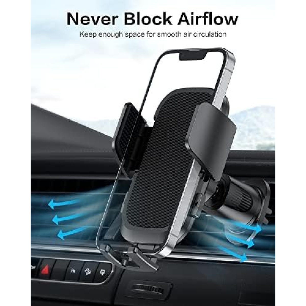 Never Block Airflow: To avoid blockage of your car air vents, the phone holder car offers an extended arm, which is important for exceptional air circulation in your vehicle. As an added benefit, the holder has a phone charging port underneath.