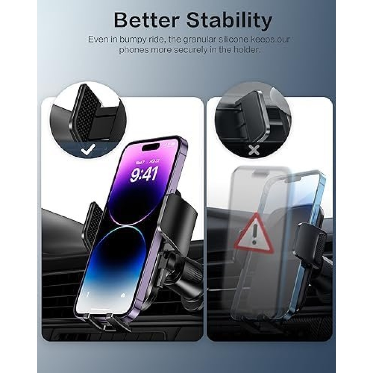 360° Rotation & Silicone Pads Protection: This phone mount for car features a universal knob for rotating the device for optimum readability. The addition of silicone pads protects this device and slows down wear and tear.