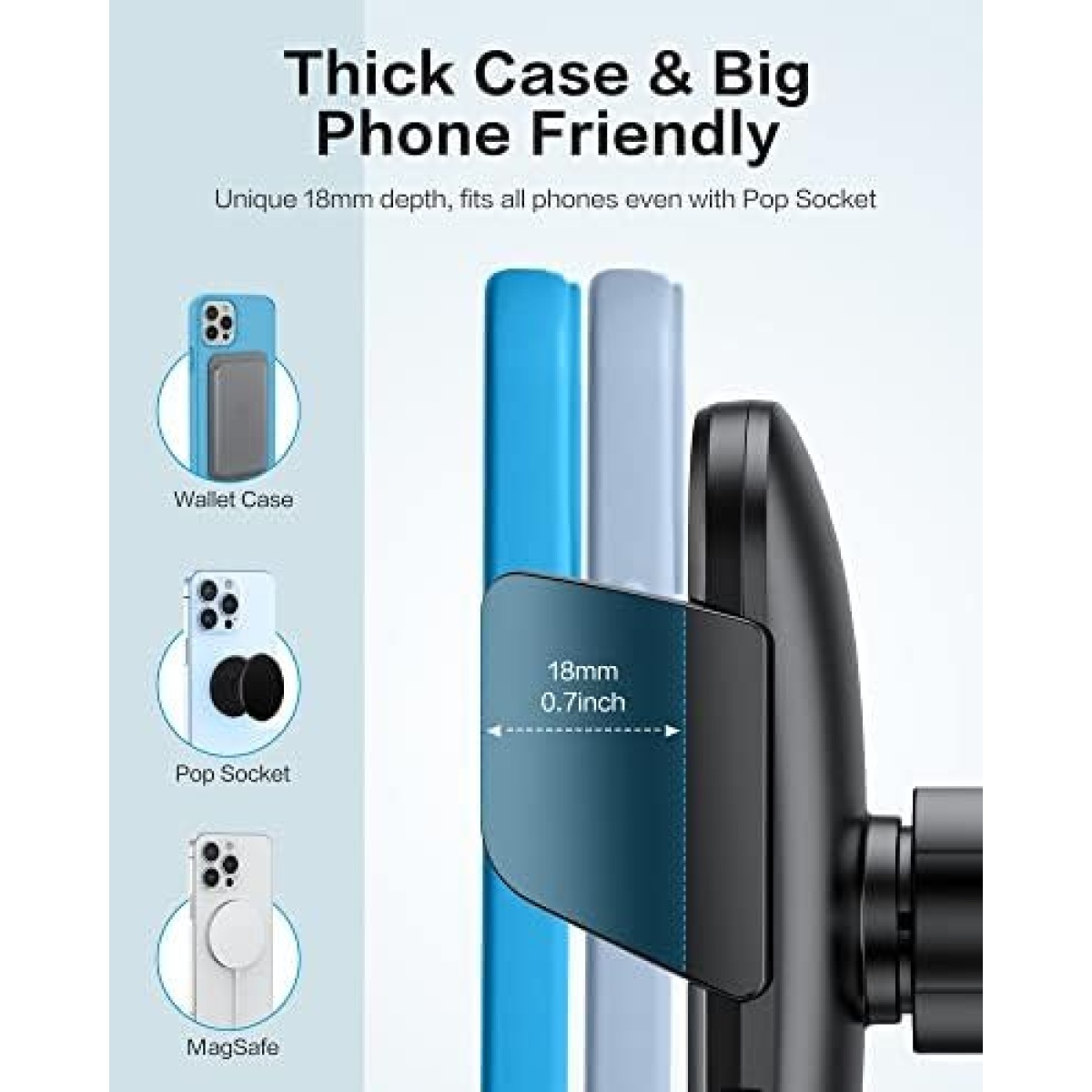 Wide Compatibility: This phone car mount is compatible with all 4-7-inch mobile phones with or without cases. This includes iPhone 14 Pro/14/13/13 Pro/12 Pro Max Mini/11 and a number of Samsung models. It also comes with a 3-year warranty.