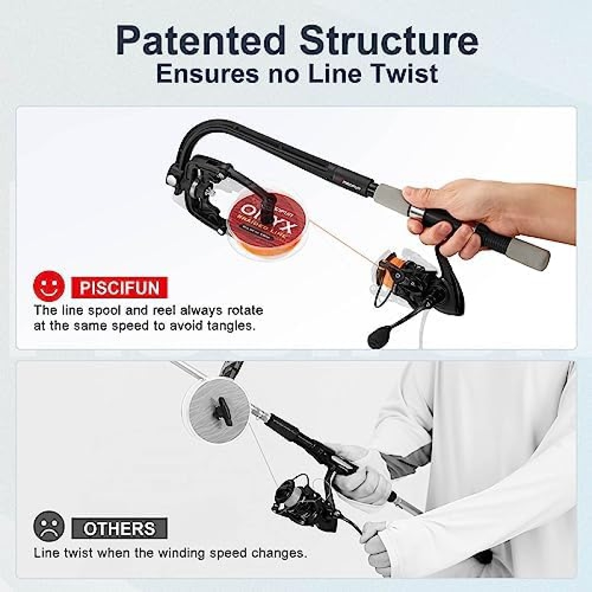 【No Line Twist】 Say goodbye to tangled lines and knots with Piscifun’s unique patented structure. Our line spooler ensures perfect tension and reduces noise for a smooth winding process.