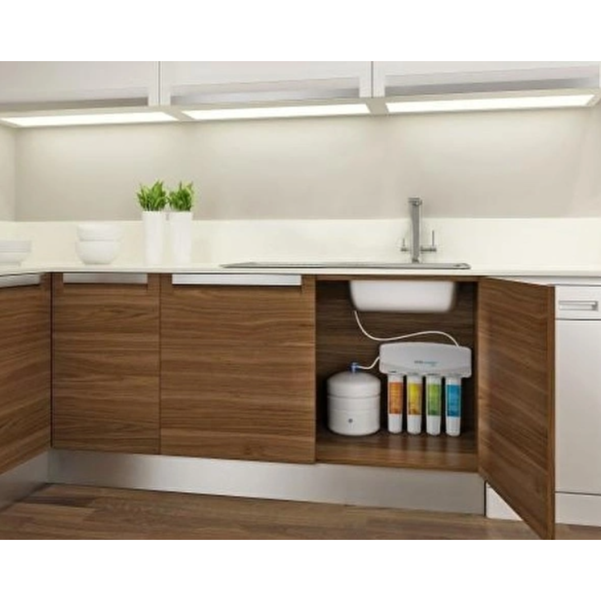 The semi-cleaned water comes into the hyper filtration cartridge, the heart of the system. Hyper filtration has a semi-permeable membrane structure. It works with a pressure of at least 2.5 atmospheres. Its pores are between 8-10 agstron. On hyper filtration, heavy metals such as lead, mercury, nitrate, arsenic, copper, bacteria and different chemicals or pollutants such as lime, which can be dissolved in water, do not have the chance to pass through the semi-permeable membrane with pores of one millionth of a millimeter. Hyper filtration performs a perfect filtration of dissolved chemicals, micro-organisms and harmful minerals while allowing their molecules to pass through. Only water molecules and anions and cations beneficial for human health pass through this filter. The water coming out of hyper filtration is real healthy drinking water. The daily water yield of hyper filtration is around 350 liters. The healthy drinking water obtained from the membrane comes into a 12 liter stainless steel tank and is stored here.