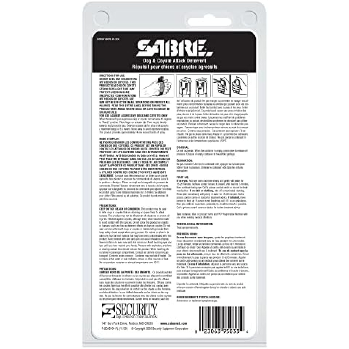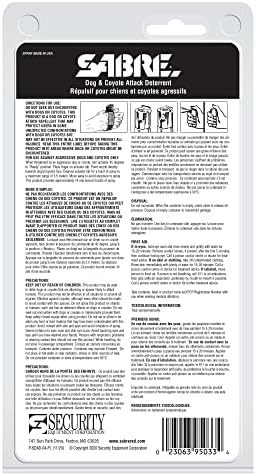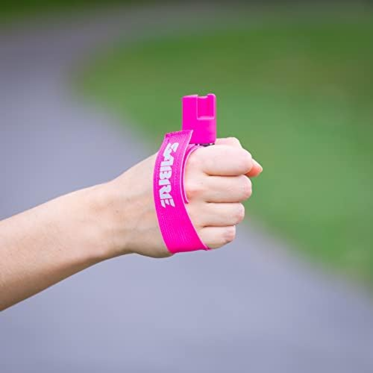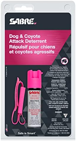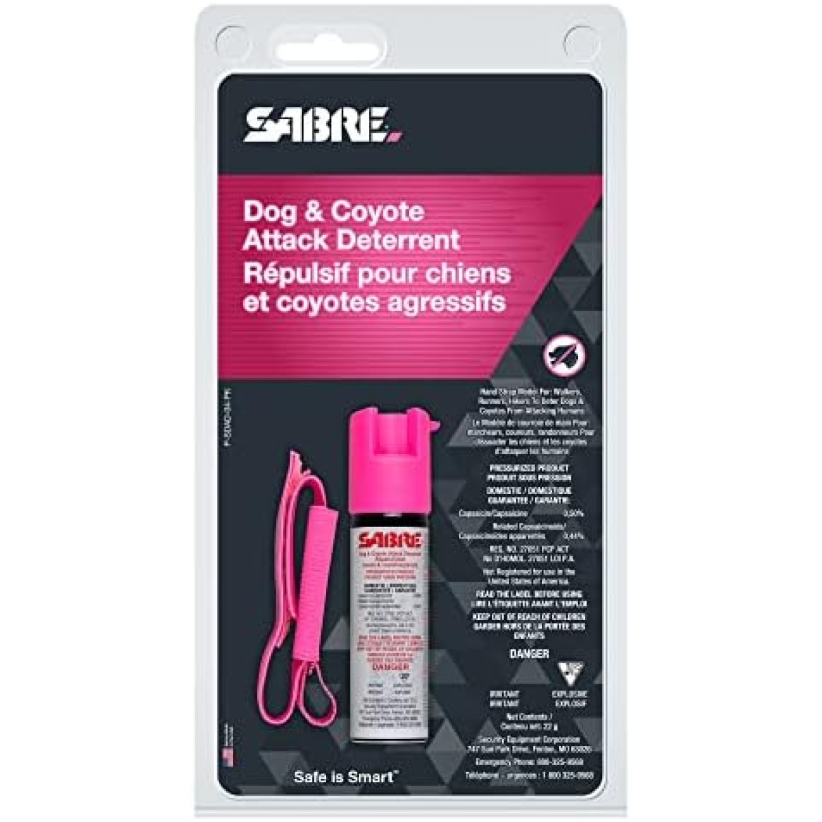 Run or walk confidently with the SABRE Dog and Coyote Attack Deterrent with Adjustable Hand Strap. Short-term, humane, and convenient, this dog spray helps deter dog attacks while helping prevent injuries to yourself, your pet, and the attacking dog. Humane and Effective: SABRE Dog and Coyote Attack Deterrent is natural and contains the maximum strength of capsaicinoids allowed. Guaranteed SABRE Maximum Strength Formula in Every Canister: According to an independent study conducted by the University of Utah, variability rates in the concentration of active ingredients in Pepper Sprays have a 30% failure rate. With an industry exclusive HPLC laboratory, only SABRE guarantees its maximum strength formulation in every canister to help give you peace of mind, certainty, reliability, and safety when you need it most. Protection at a Safe Distance: 3-meter range Protection Against Multiple Threats: 5 one-second bursts Personal Protection You Can Trust: SABRE is the number 1 pepper spray brand trusted by police and consumers. SABRE Pepper Spray is made in the USA. On-the-Go Safety: Adjustable hand strap provides protection at your fingertips.