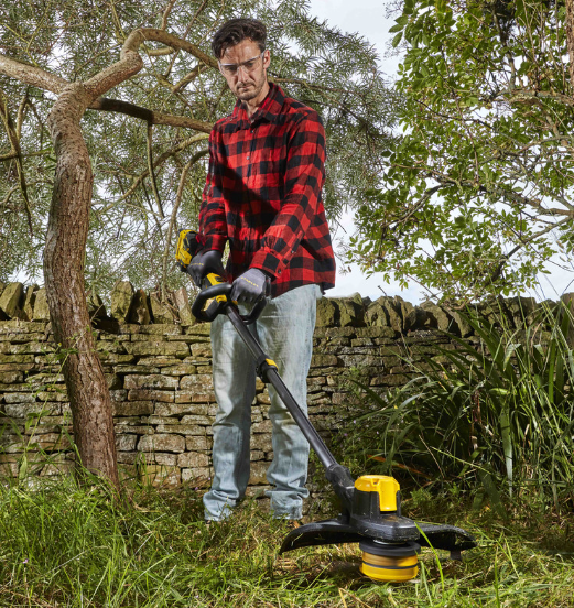 The 18V Stanley FatMax V20 33cm brushless cordless trimmer with improved battery technology, no memory effect and minimal self-discharge, features the new V20 lithium-ion battery pack that is ready to go to work whenever you are and wherever the job takes you. The string trimmer features brushless motor technology for improved power efficiency and longer runtime, from a smaller, more compact motor with reduced maintenance and extended working life. The unit features a large 33cm cutting width for fast and effective trimming, gear-drive transmission for increased torque and more cutting power and a bump-feed QUICKWIND™ spool system providing a strong 2mm dual line to tackle thicker grass and weeds. Complete with a high/low speed control for variable speed to maximise runtime efficiency, an adjustable auxiliary telescopic handle for comfort and ease of use and an integral battery state of charge indicator for convenient monitoring of battery charge levels. Compatible with the Stanley track wall system – a versatile, adaptable storage system for your garage or workshop. Part of the new 18V Stanley FatMax V20 Cordless System. Power all your V20 tools with a common, new and improved 18V lithium-ion battery to help power through all gardening endeavours with ease.