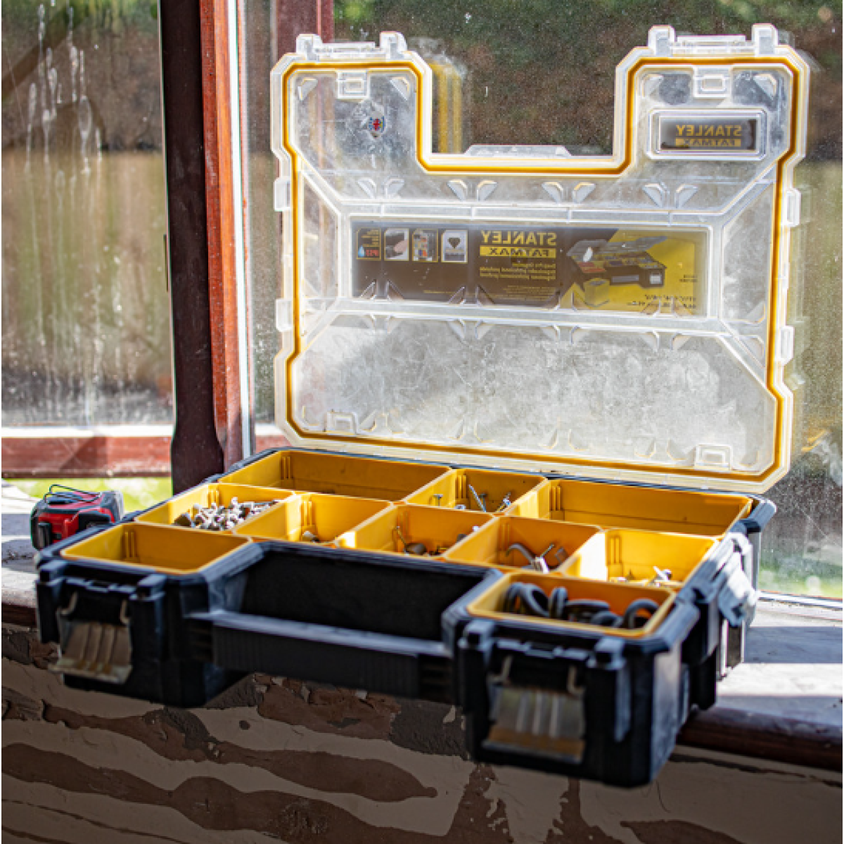 Need somewhere safe and secure to store all your bits and bobs on site? You’ll love the Stanley FatMax Organiser – it’s the perfect solution for getting your screws, nails, fittings and accessories ordered and categorised properly.