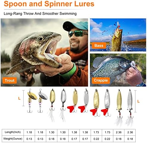 【Best Gifts for Angers】 – This fishing lure kit is designed for freshwater, which contains all kinds of Lure and tackle that can be used in a variety of fishing occasions. Best fishing gift to any beginner or addictive anglers. Especially suitable for Father’s Day, Valentine’s Day, Thanksgiving, Christmas, Birthday, etc.