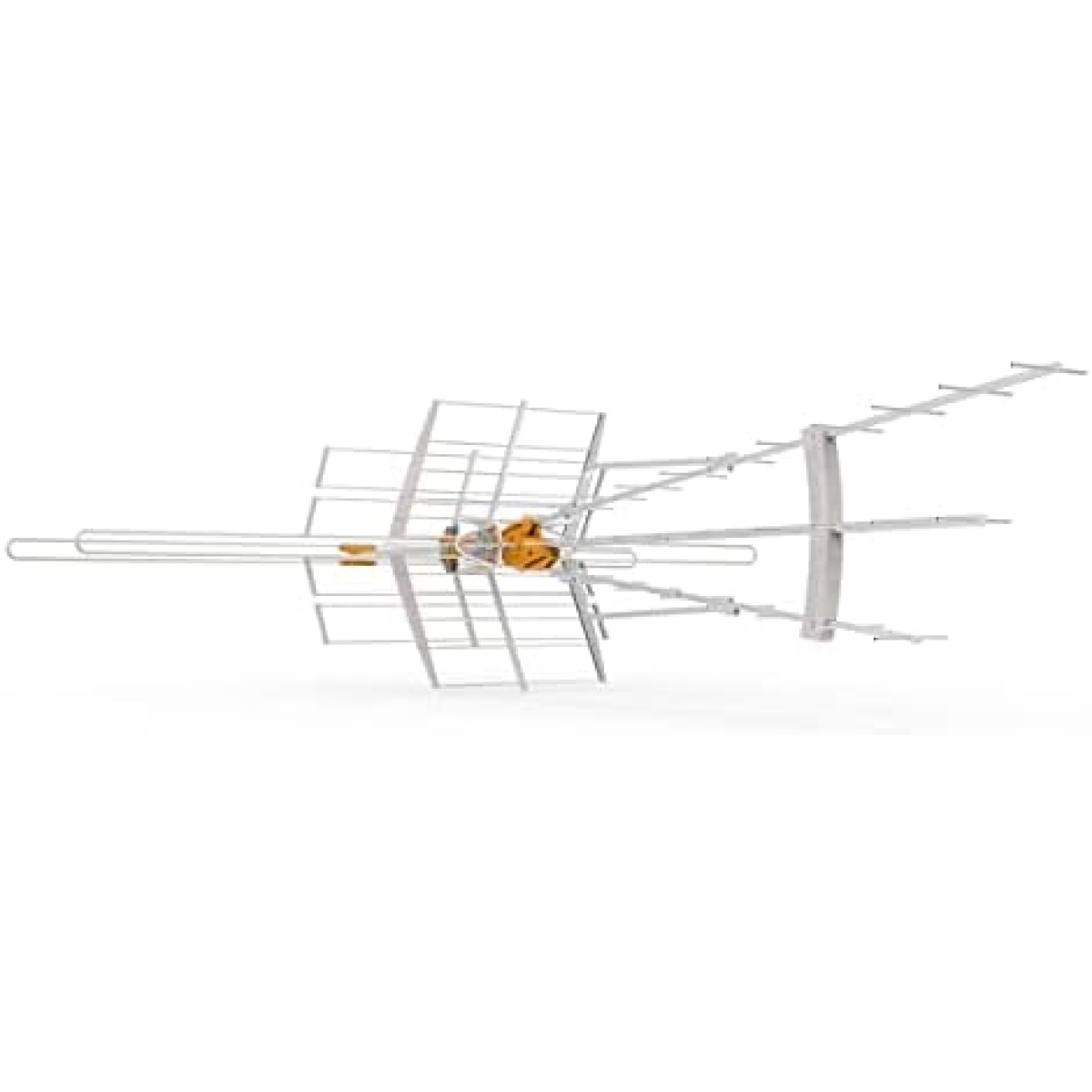 The Televes DAT BOSS LR Mix U/V-Hi/V-Lo Antenna is a state-of-the-art, long-range TV antenna that automatically adapts its gain in real time to optimize the reception of television signals. This ensures the optimum level of signal is delivered at all times. The antenna receives the latest US broadcast frequencies, significantly improving gain and range over previous generations. It receives very weak distant signals while at the same time avoiding overload caused by very strong signals. This is a very-high-gain directional antenna designed to offer stable and high-quality reception of low VHF, high VHF, and UHF signals in challenging long-range and fringe receiving scenarios. Not only do industry experts rave about the DAT BOSS Antenna’s exceptional long-range multi-band performance and market-leading gain, but also the unparalleled manufacturing quality. Using only the finest materials (aluminum, stainless steel, ABS plastic), this antenna ensures years of trouble-free operation in the most challenging environments. Experience the difference in quality and performance with the DAT BOSS LR Mix U/V-Hi/V-Lo Antenna. Enjoy crystal clear TV reception!